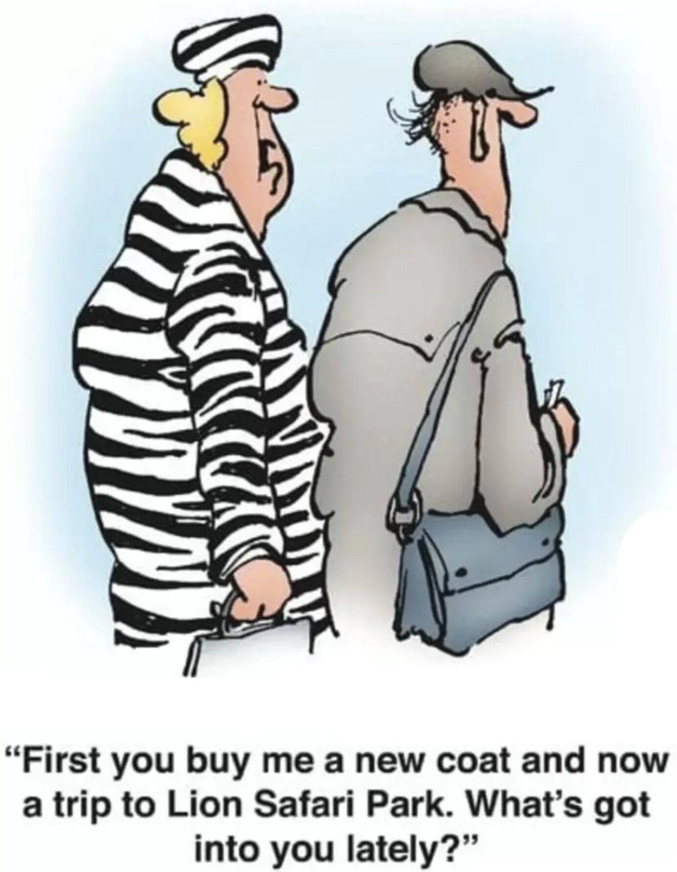 The passenger says, “Why, you just go right back and give the driver a piece of your mind! Here, I’ll hold your monkey.” 😳😳😳