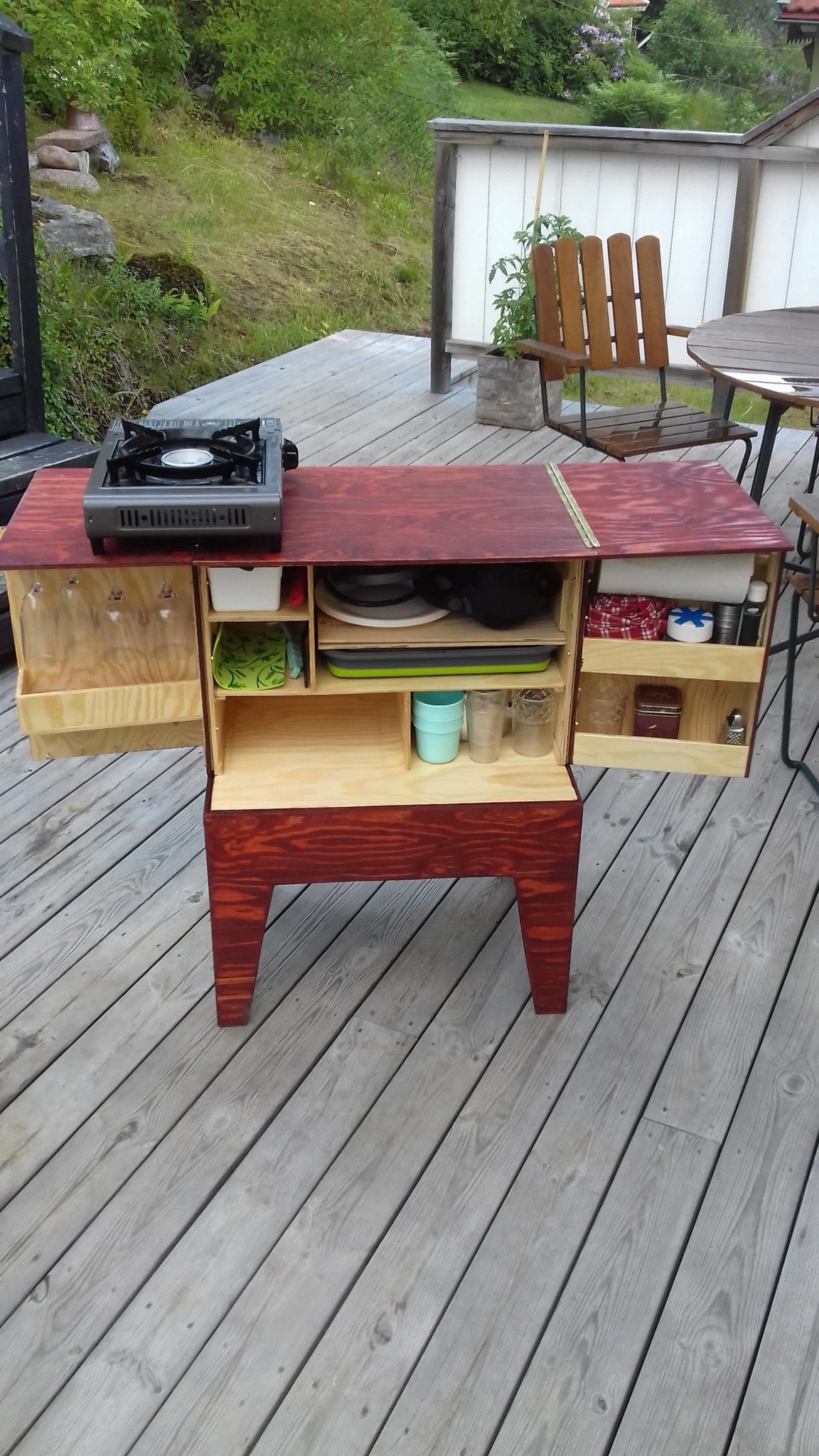 Vi campar en del med familjen (i tält på camping) så min idé för verktygslåda är en för att förvara köksutensilier i samtidigt som den fungerar som köksbänk. Oftast finns ju servicehus men det blir lite osocialt att gå iväg dit för att laga mat. Det skulle även vara skönt att bara kunna packa och dra, då tar man lådan, tältet, sovsäckarna och lite kläder.