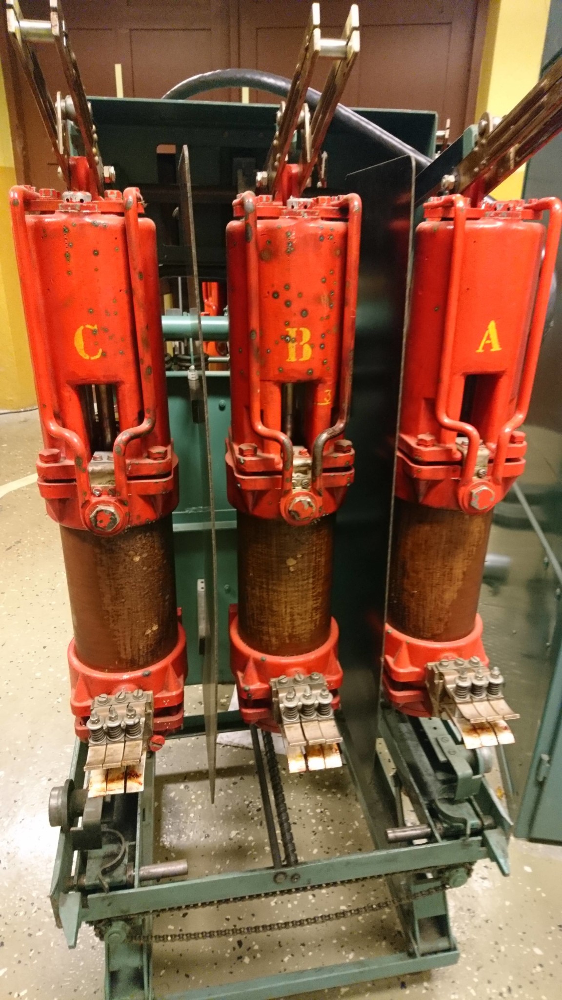I facket på de här gamla ställverken är högspännings kontakterna helt öppna och oisolerade när brytaren är utdragen.