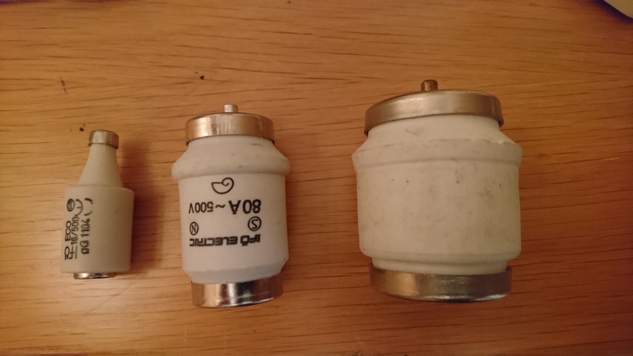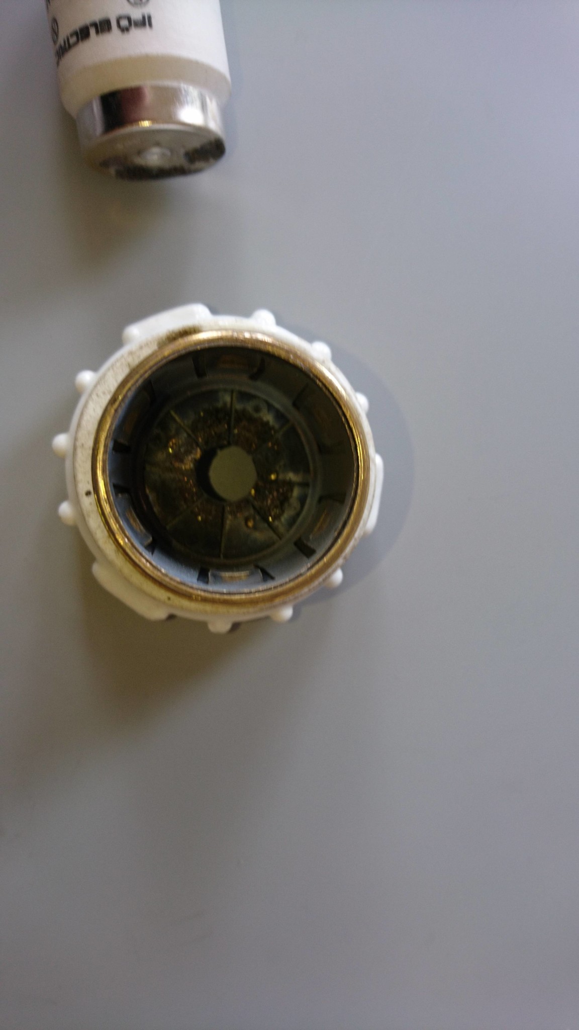 Det är tur att någon lämnat knivsäkringstången kvar på golvet så ingen får för sig att dra ur säkringarna med en polygrip eller dyl. Lådan är också försedd med gnistskärm/avskiljande asbestplattor för att förhindra att man tänder en ljusbåge mellan faserna eller till jord....