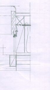 34x55 på karm och panelen mot. Listen avslutas ovan bottenblecket. Det är det som är ritat nedtill till vänster. Till höger om listen är panelen som går mot. Men denna bild visar liggande panel. Jag skulle göra så här på fönstren vid dörren och ha fvanliga oder på entrédörren. Det skulle lätta upp. Sedan kommer ju knutbrädorna som vanligt.Men, det gäller att tänka till så det blir bra anslutninga upptill.
