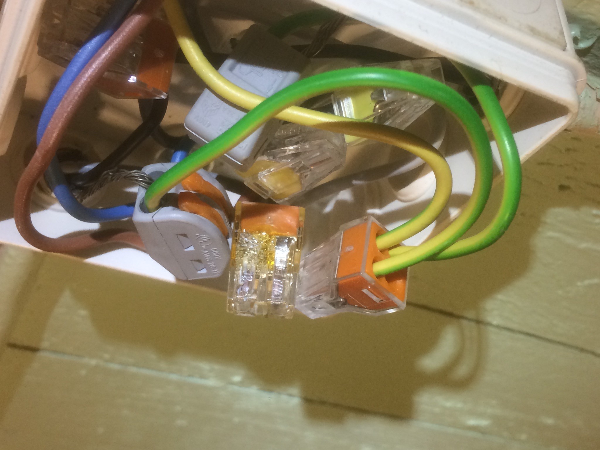 Det var runt 2013 som jag hade en behörig elektriker i huset för att fixa en äldre lamparmatur där kopplingen ”bränt”. Vet inte vad som hände, men det hade gått sönder. Såg bränt ut. Han tog bort lampan och satte dit en dosa istället, och det är i denna en Wago blivit helt förändrad.