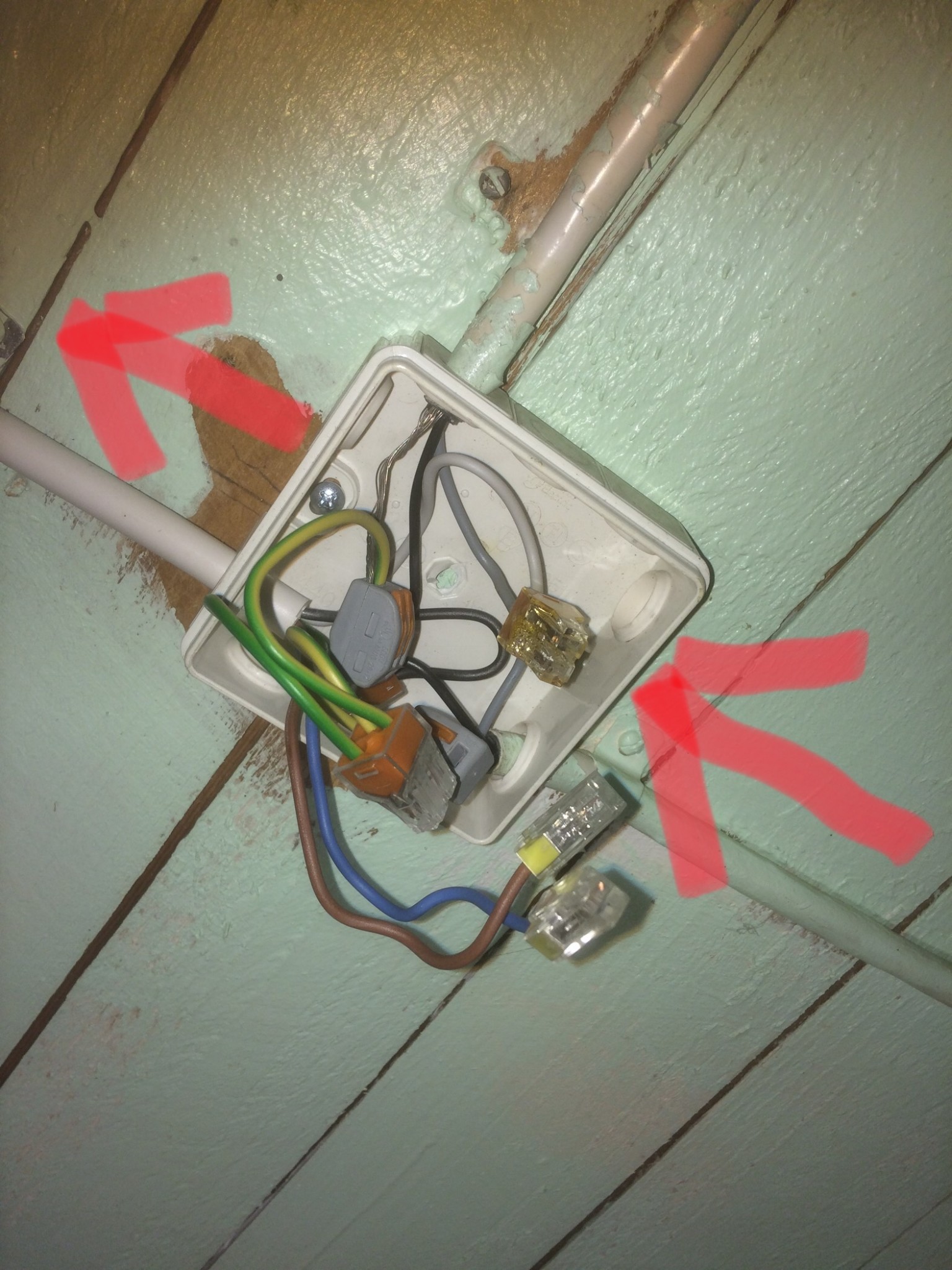 Ska kolla efter orsaker till att det har blivit såhär, men det är nog som ni säger att tråden inte är intryckt tillräckligt. Ström är inte att leka med. Visst, jag har ingen elbehörighet med inte gör jag sådana här slarviga och dåliga installationer!!