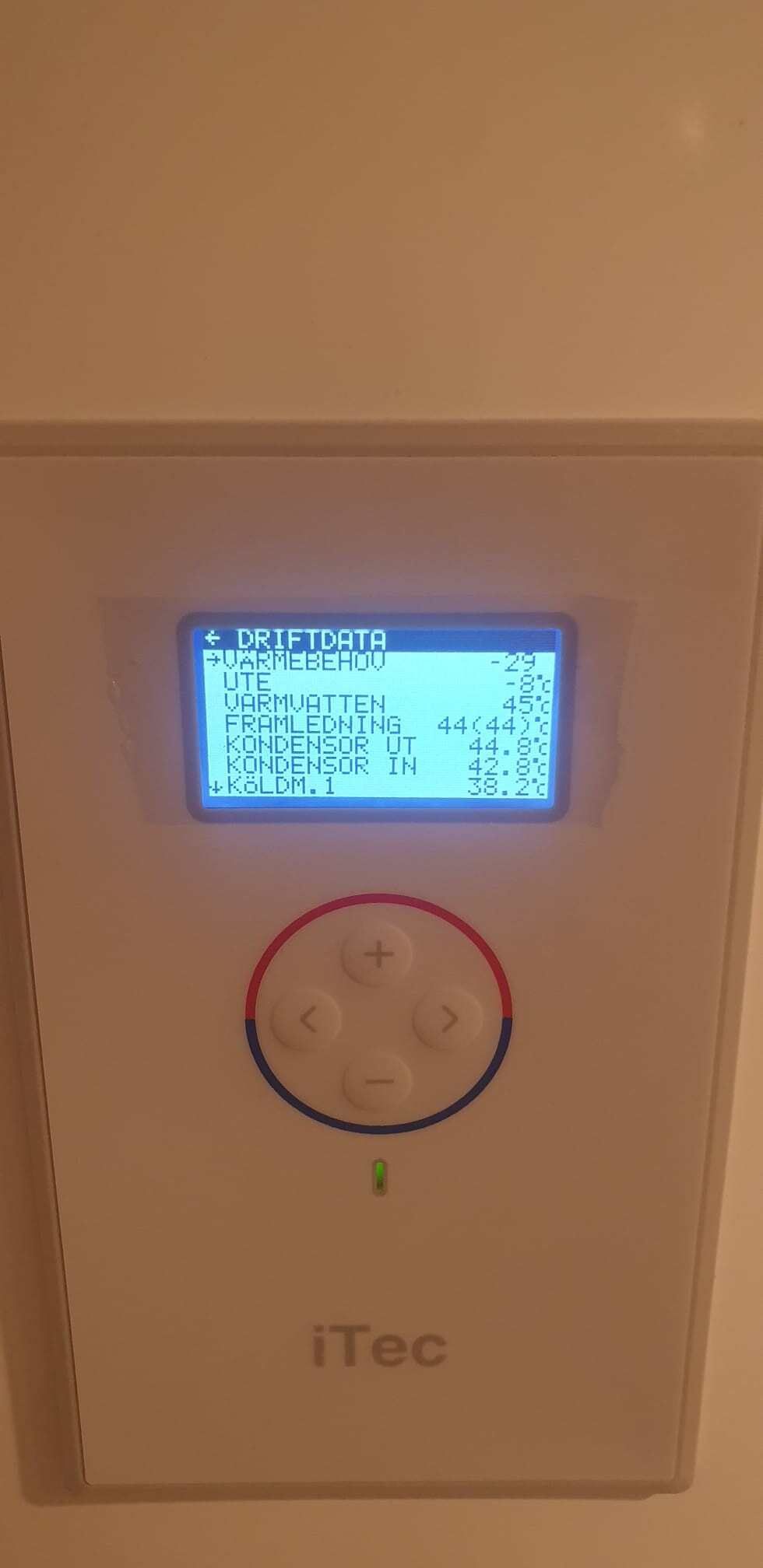 Jag har en Thermia iTec Eco Total EQ 8kW med 60 liter bufferttank installerad och i bruk från 20230215, Mitt hus är på 185m2 + 10m2 verkstad där innedelen är placerad. Vi är 2 pensionärer med bottenvåning på 120m2 och värme satt till +22 och 65m2 övervåning med +18 i tre sovrum och allrum med +20. Övervåningen har Danfoss ECO termostater som fungerar perfekt. Innan värmepumpen hade vi elpanna och varmvattenberedare och vanliga vattenburna element. Förbrukning de närmaste åren innan värmepumpen varierade årsförbrukningen mellan 19000-22000 kWh. Under 2024 var förbrukningen 8100kWh. Spillvärmen från kopparrören i verkstaden till utedelen värmer till ca 17C. Nu har jag provat mig fram till lagom isolering av rören för denna innetemperatur. Tidigare värmdes detta rum med ett 500W elelement. Kolla mina bilder för förbrukning och driftsdata. Förbrukningen tills nu under februari blir högre än förra året. När yttertemperaturen är under -10C går tillsatsvärmen igång. Av driftstiden på displayen är 24h från instalationdagarna då innedelen gick utan ytterdel. Jag bor strax norr om Göteborg och ytterdelen står på husets sydsidaR Rk1998 skrev:Hej,