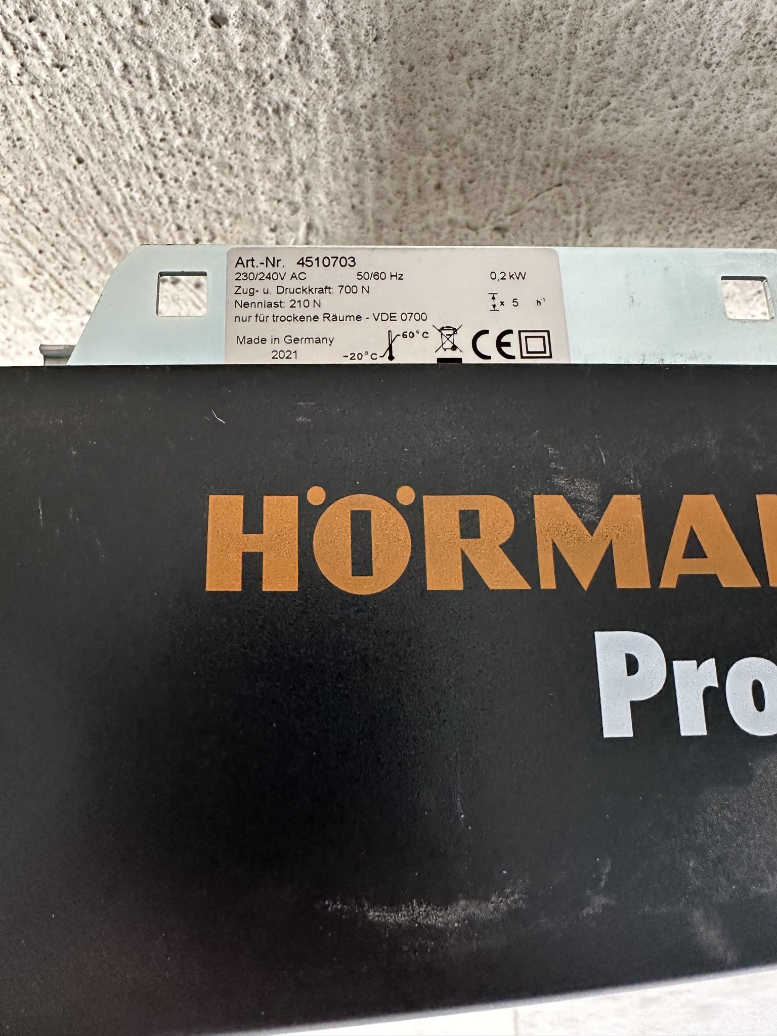 Jag har ingen Hörman men jag har Z wave och köpte en liten modul som jag koppla in i styrningen på min port och kör via mobilen