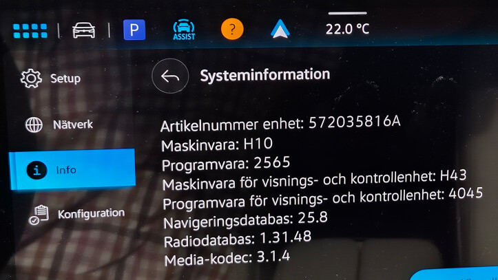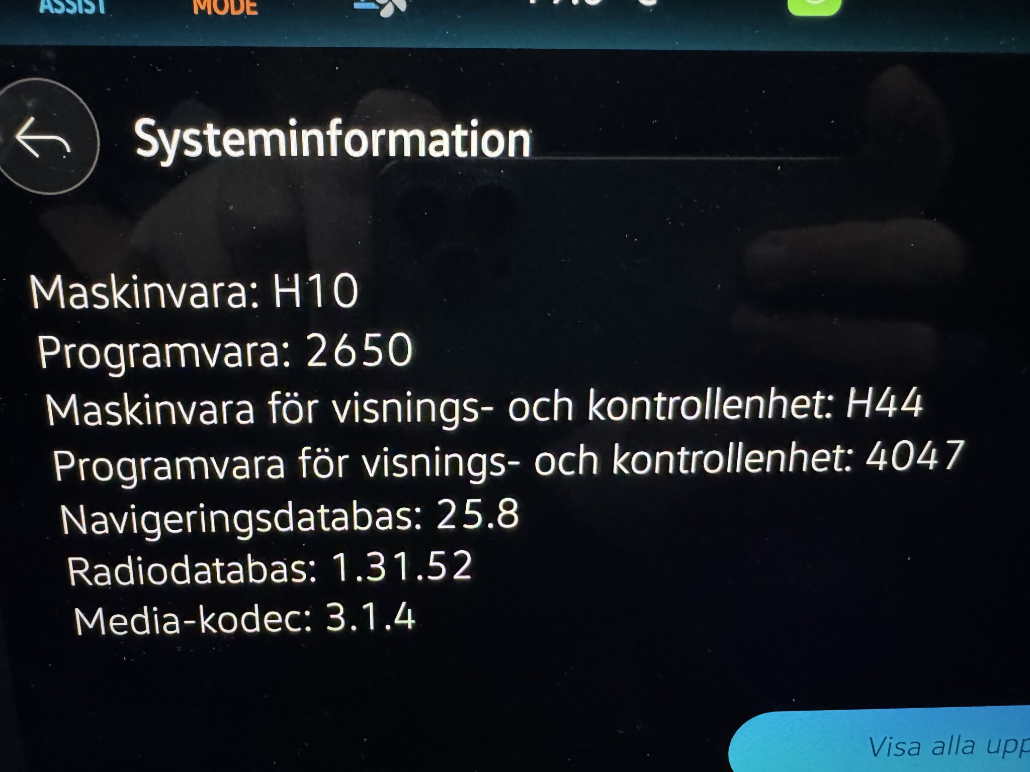 B Bo Berglund skrev:Jag undrar hur man kan se vilken mjukvaruversion som bilen har_