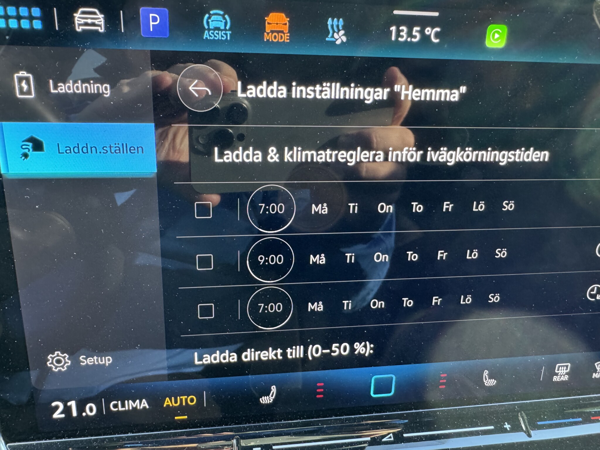 Min fråga avsåg Junkan och hans bild på mjukvaruversion. Jag har precis samma version som du på min bil, Bo, o jag kan inte tidsstyra laddningen. Pratade med verkstaden i måndags. Han sa att man först skulle sätta laddplats under Laddning för att kunna aktivera tidsstyrningen. Den möjligheten skulle finnas på alla mjukvaruversioner. Det gör den inte.... Därav min fråga till JunkanB Bo Berglund skrev: