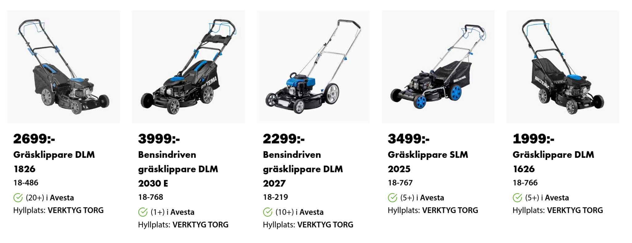 Jag råkade ramla in på Biltemas utbud av motorgräsklippare och konstaterade att de har en del riktigt billiga:
