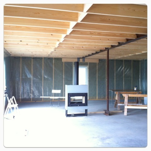 Jag har räknat med 200kg/m2 i last och 50kg/m2 i egenvikt, jag har god marginal mot nerböjningsnormen (spännvidd/400) men kan uppleva lite svikt om jag hoppar mitt ovanför 5m spannet.