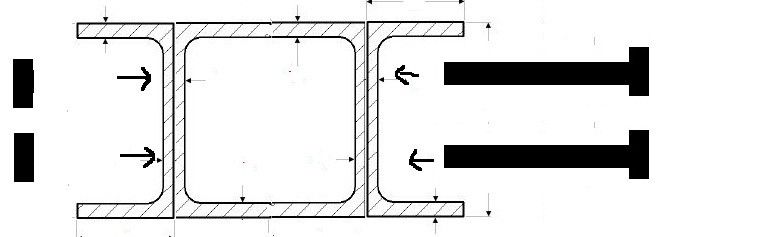 Man kanske då kan ha en UPE (200mm hög och bredd 80mm) en KKR (200mm hög, 100mm bred, godstjocklek 8mm) och sedan en likadan UPE till. Blir totalt 260mm brett och (givetvis) 200mm högt. Frågan är om det tillsammans blir bättre än en 200mm HEB? (enklare att hantera blir det, kan ju lyfta upp en i taget),