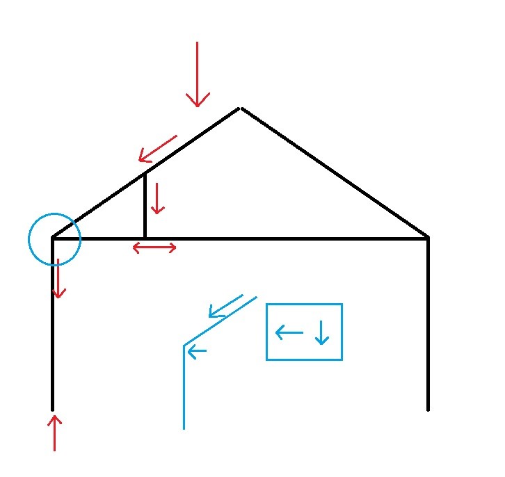 en kraft som tas upp snett kan delas upp i komposanterna, det betyder att du bör ha löst infästningen av ytterväggen och planera för att underramen håller in ytterväggarna för att inte tak + väggar ska göra en Bambi på hal is, dvs lägga sig ner.