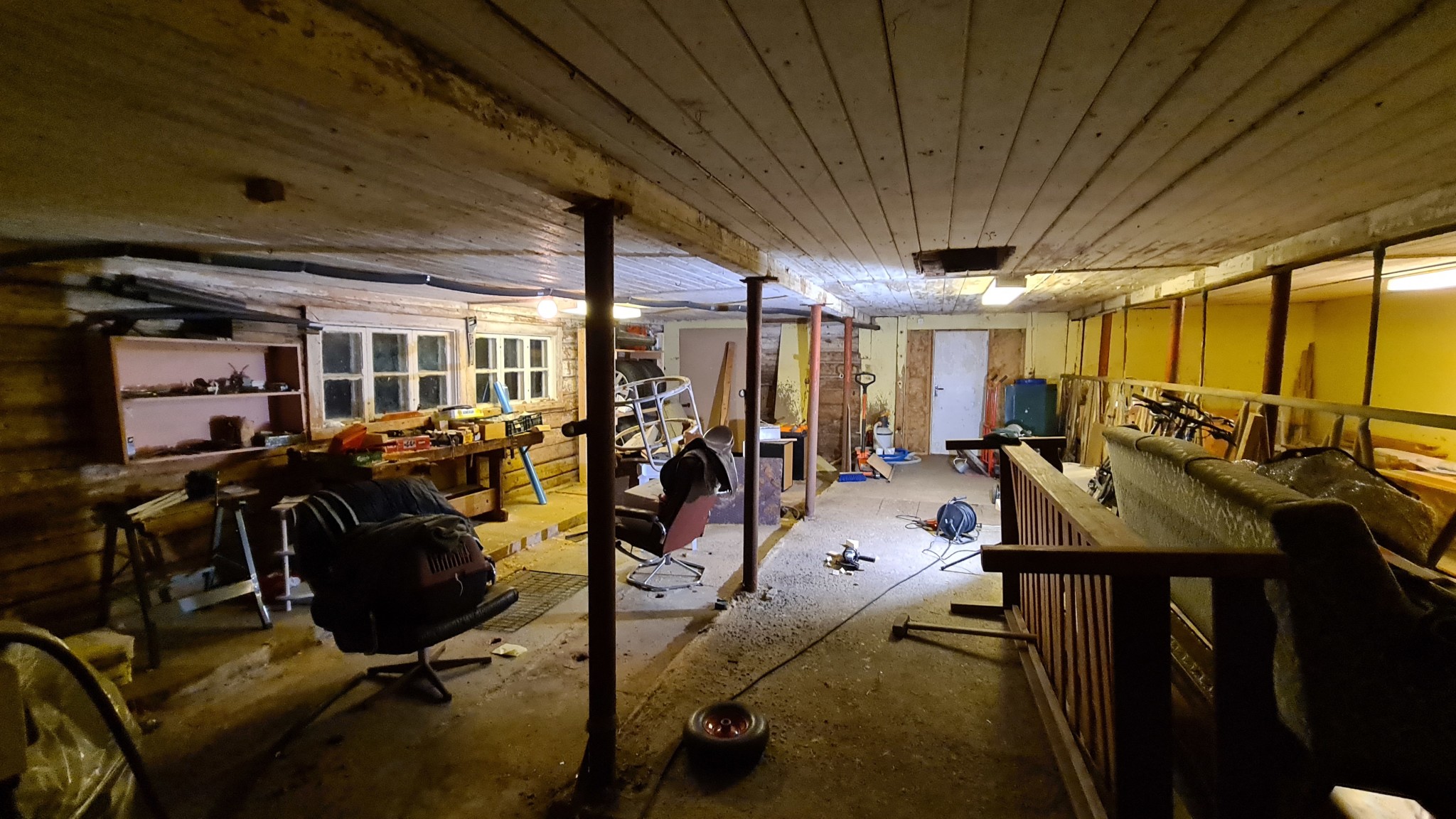 På loftet ovanför finns idag inget tungt, tidigare har dom haft förvaring av hö och i framtiden tänker vi ha det som en festlokal så inget tyngre ska förvaras där.