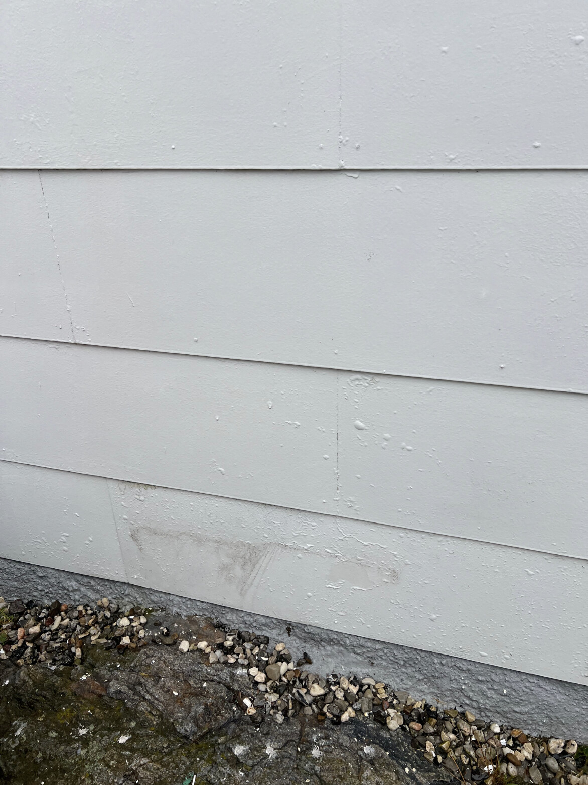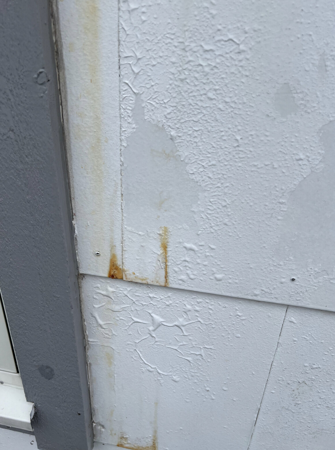 Vi köpte ett hus med fasad i eternit förra sommaren. Över vintern har färgen börjat flagna och bildat bubblor på flera ställen. Jag kontaktade förra ägaren som sa att han trodde att han hade målat med fel färg (träfärg var allt han sa).