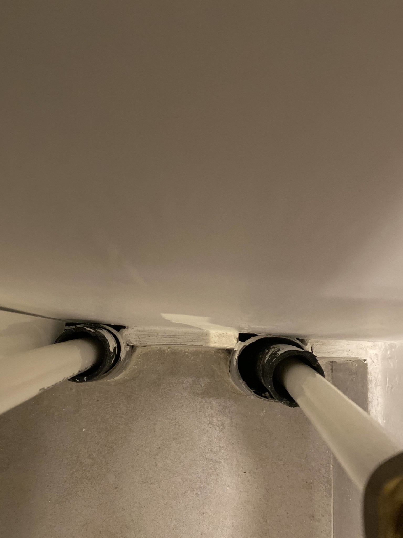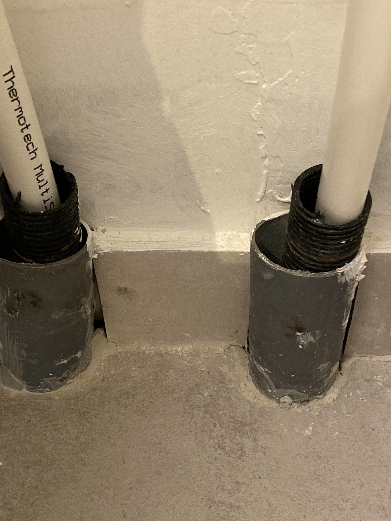 De vill alltså gjuta rören i betong (se bild) och sen lägga tättskikt på betongen. Inte så trevligt att ha betongklump på golvet. Borde man kräva kompensation?