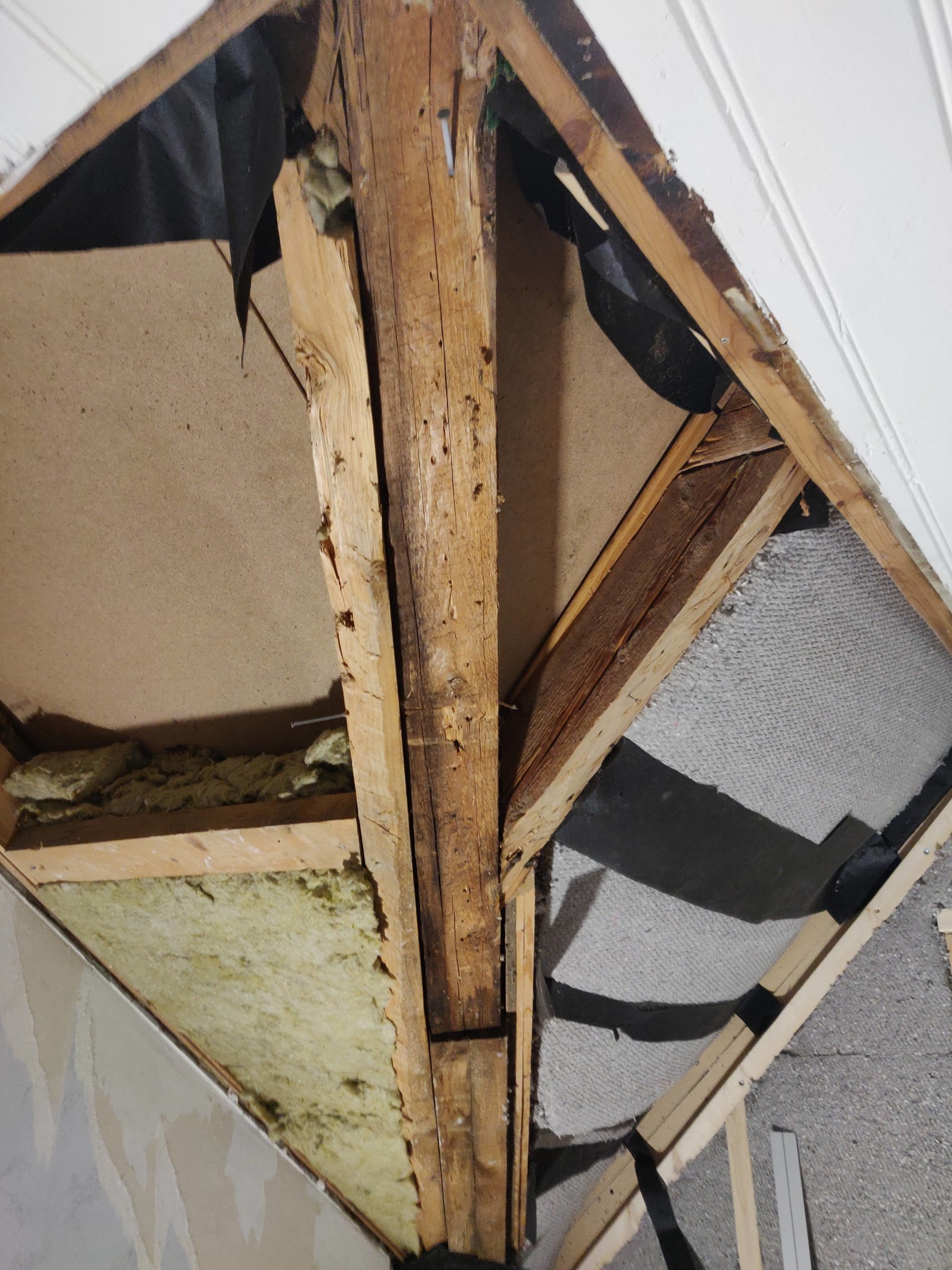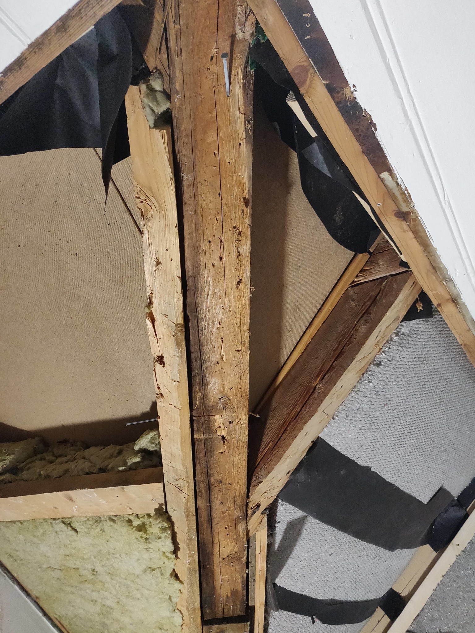 I samband med renovering av ett rum på ovanvåningen har jag tagit ner isolering och skivor kring ett snedtak och därmed tagit fram en takstol.