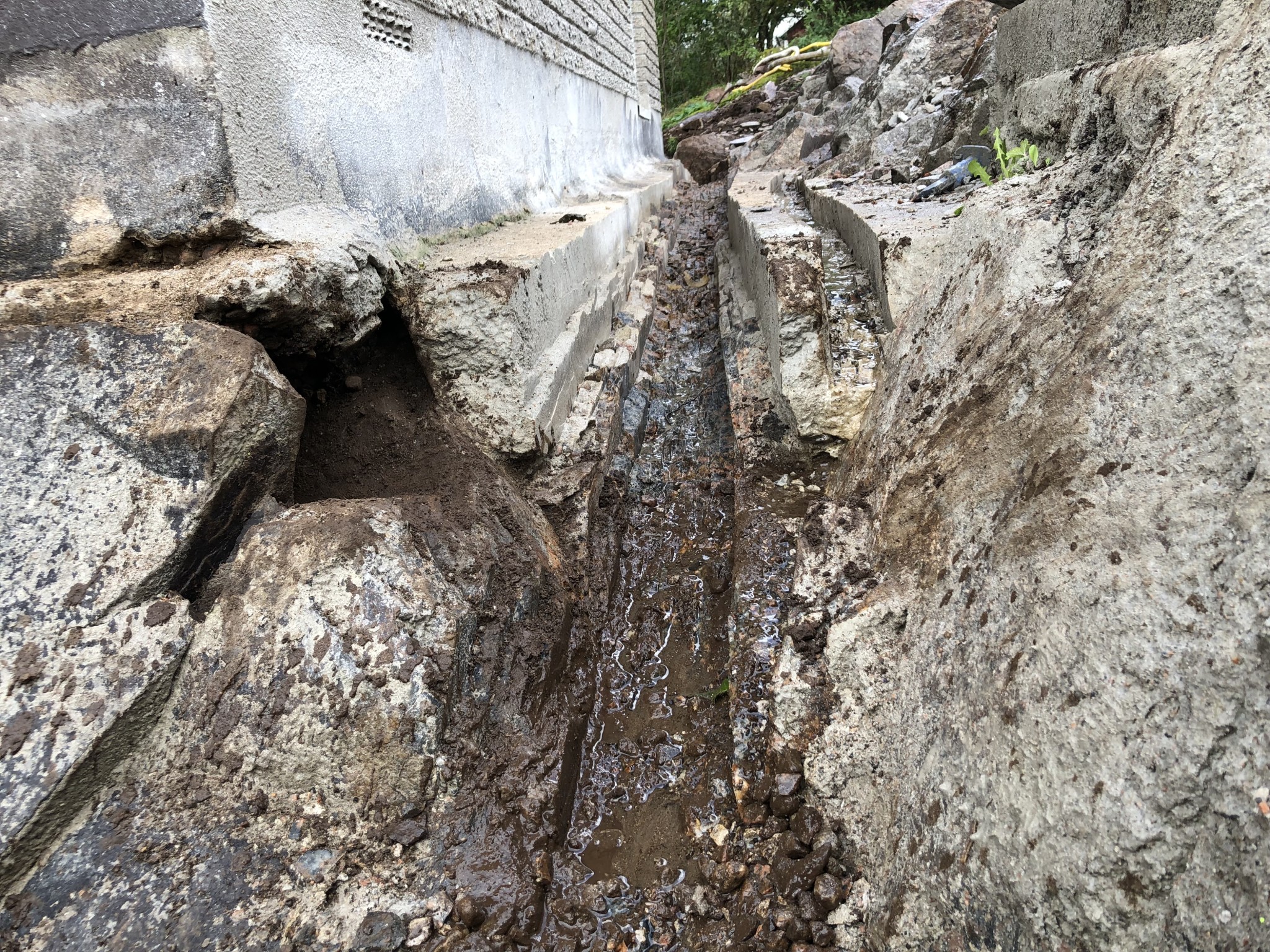 Sen är det ju som vanligt, hus på berg sådär är ju inget drömläge direkt när det gäller dränering och vatten som rinner efter berget.