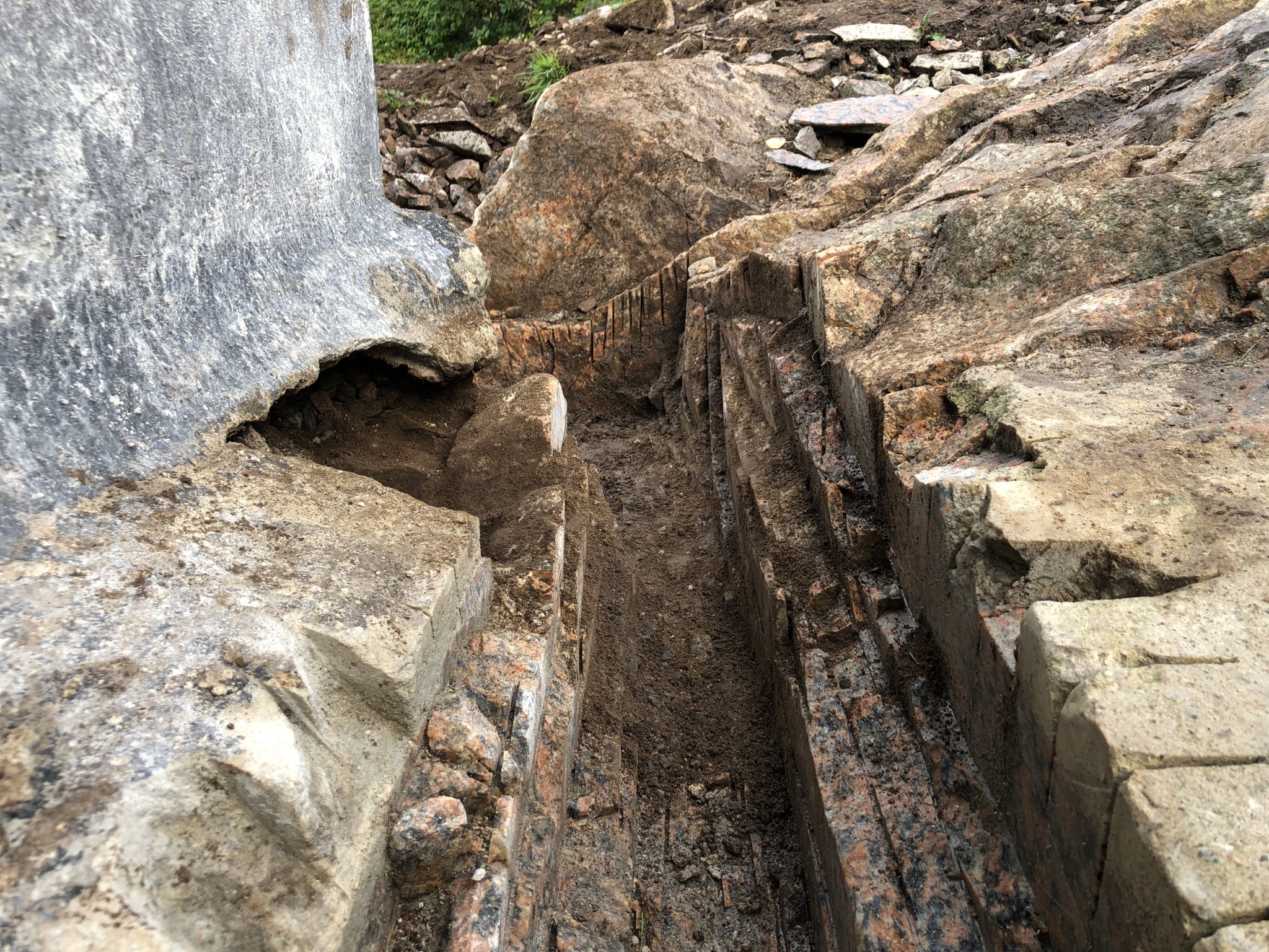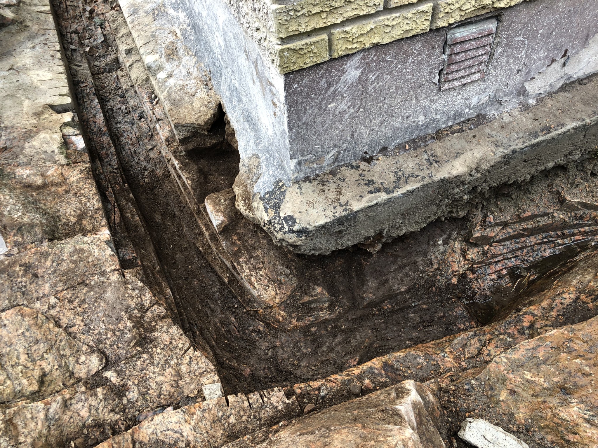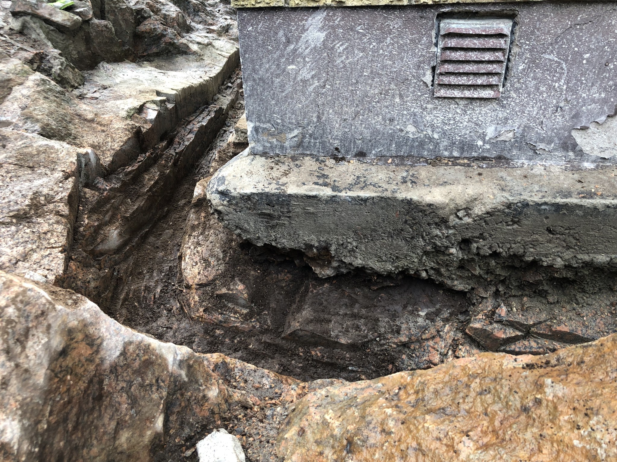 1930 så handgrävde man grunden och hur det såg ut under fick man försöka lösa. Det var dessutom svårt att skölja rent berget osv osv. Där för är det inte förvånande att sulorna ser ut som det gör nu när du frilaggt.