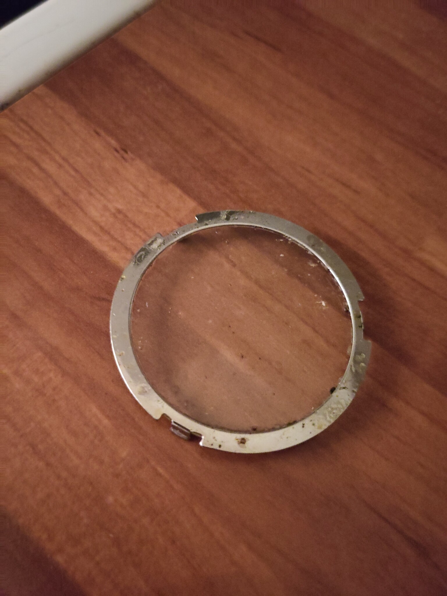 Edit: Jag skulle provat med två stycken små skruvmejslar, en i varje "klo" och böjt och försökt lossa ringen med glaset.