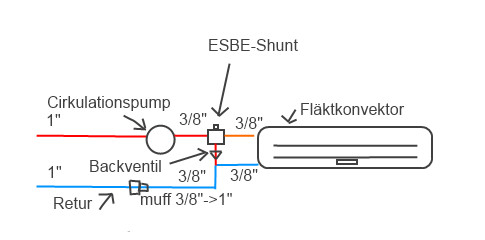 Om jag sätter en vanlig cirkulationspump direkt efter 1" inkommande, efter det en shunt med återcirkulation till retur 1" och sedan en 3/8" till konvektorn så bör jag väl få fart på det?