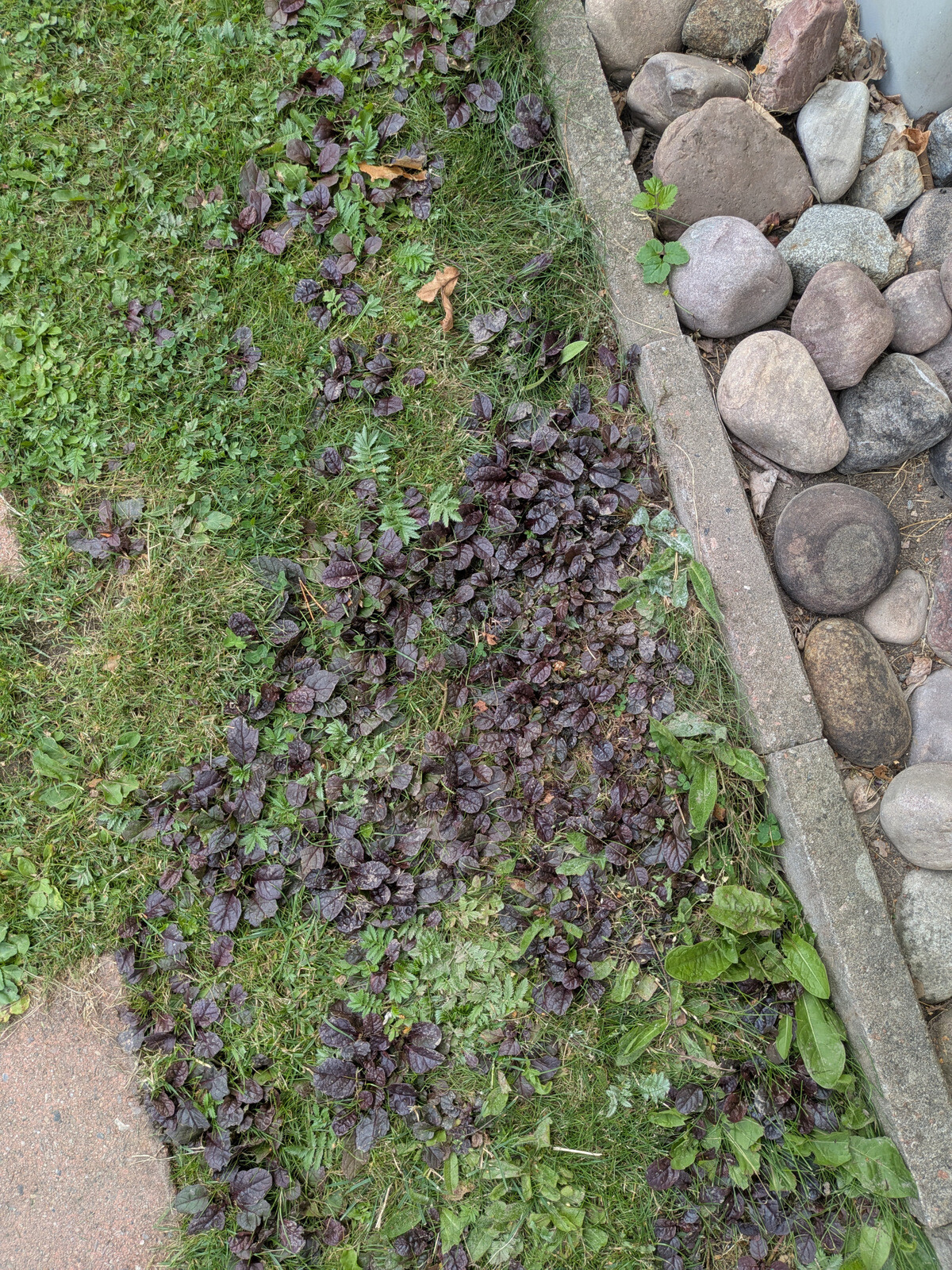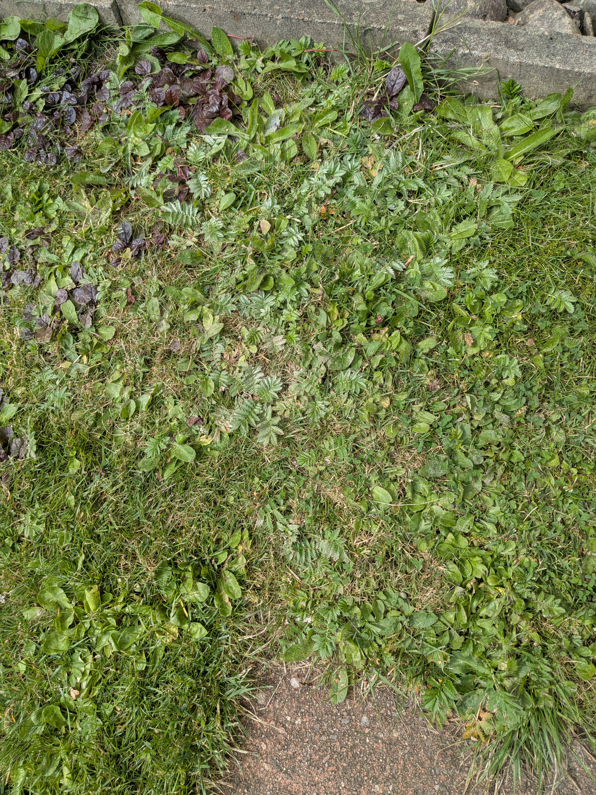 Till största delen består ogräsen av stora kolonier groblad, på andra är det klöver.. sen finns det även mossa (på andra ställen), och några röda blad som jag inte vet vad det är, nån annan som vet? ..och lite annat smått och gott. Har bifogat några bilder.