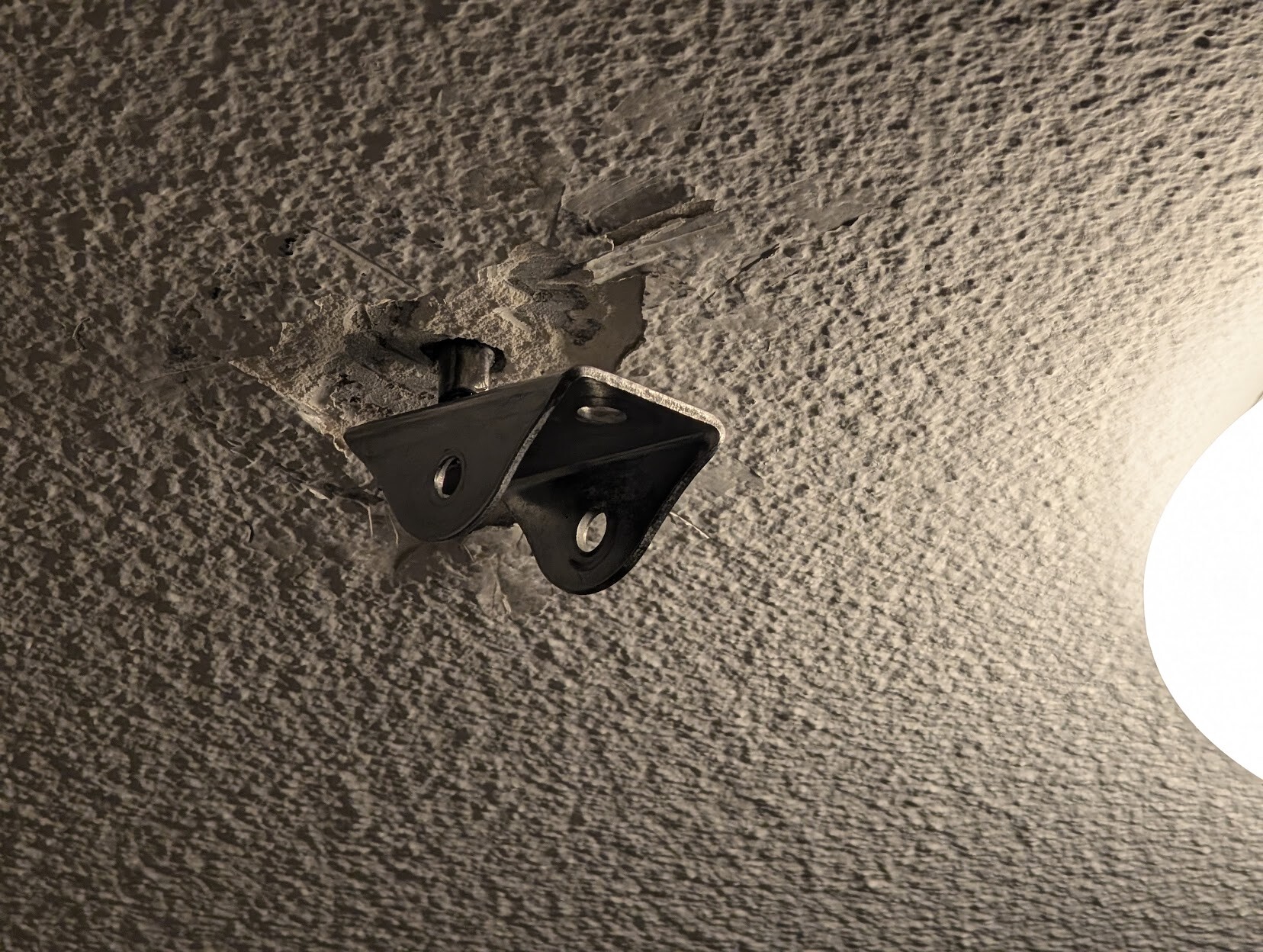 Kan gärna inte vinkelkapa bort bulthuvudet inne i en lägenhet, alldeles för mycket gnistor och risk? Kan man borra bort bulthuvud, få loss metallkonsolen som ringarna hängt i och sen bara spackla över? Dremel?