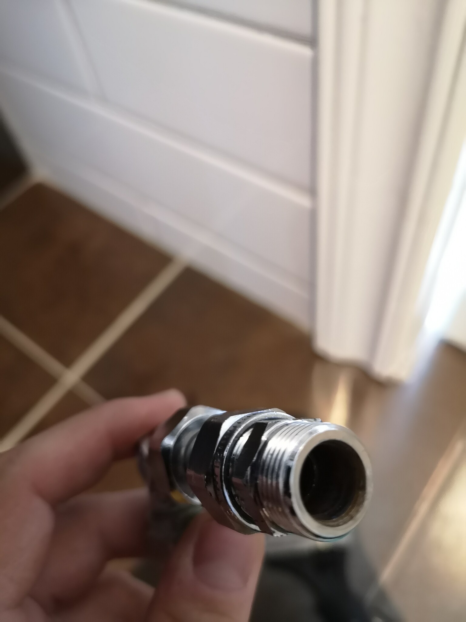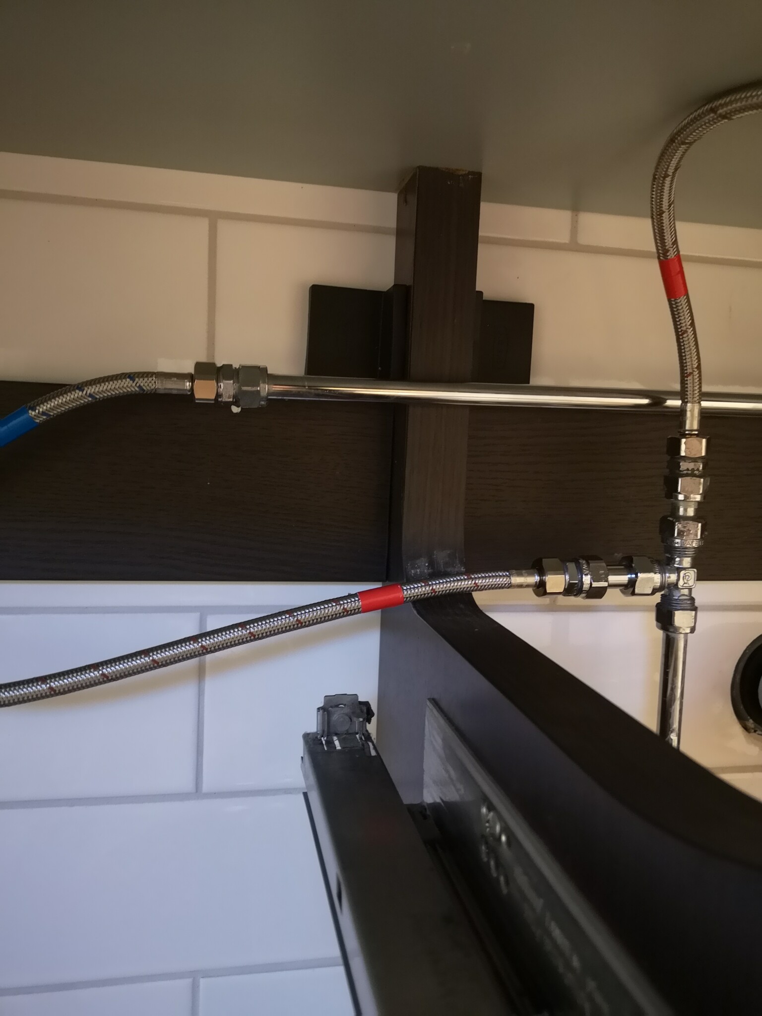 Jag tog bort lite delar och provmonterade igår men är inte nöjd med resultatet. De flexibla slangarna är så långa för att passa bra till befintlig rörlängd. Dessutom läcker det på ett ställe.