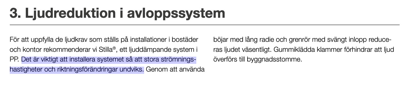 Eventuellt kan fallet på rören ha med ljudreduktion att göra. Pipelife skriver:
