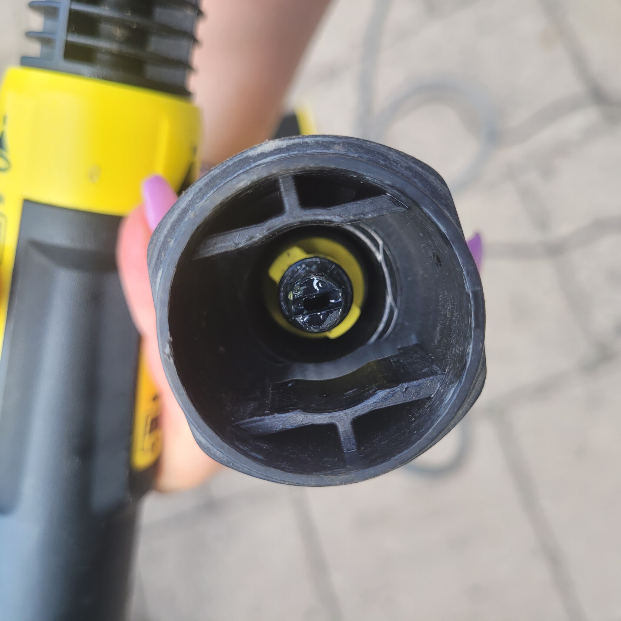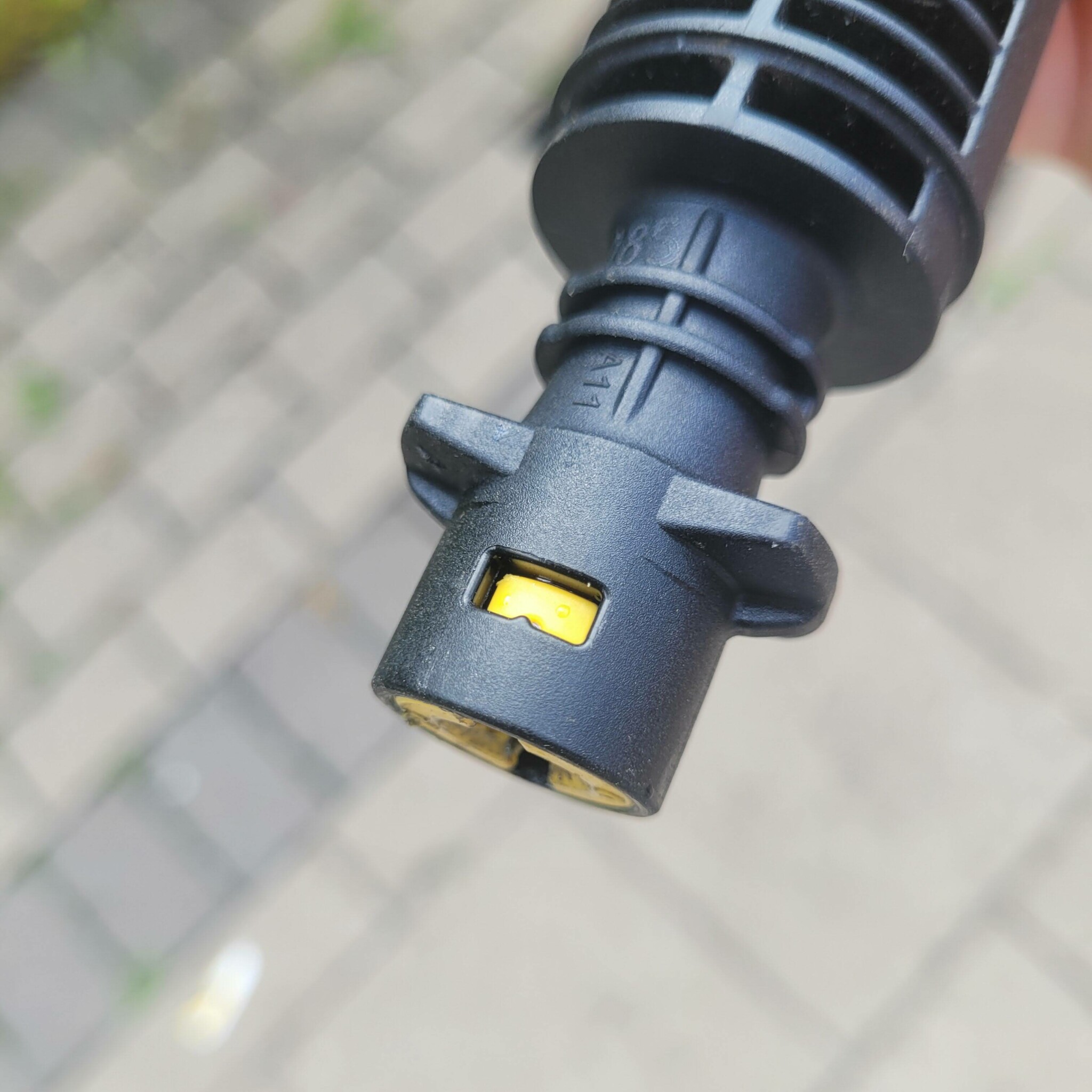 Den hade jag av, eftersom det inte finns någon sådan på terasstvätten, och den funkar. Men kändes helt fel.. Ska testa igen imorgon. När jag kollar Kärschers video så ser det ut som den gula delen är därFredrikR skrev: