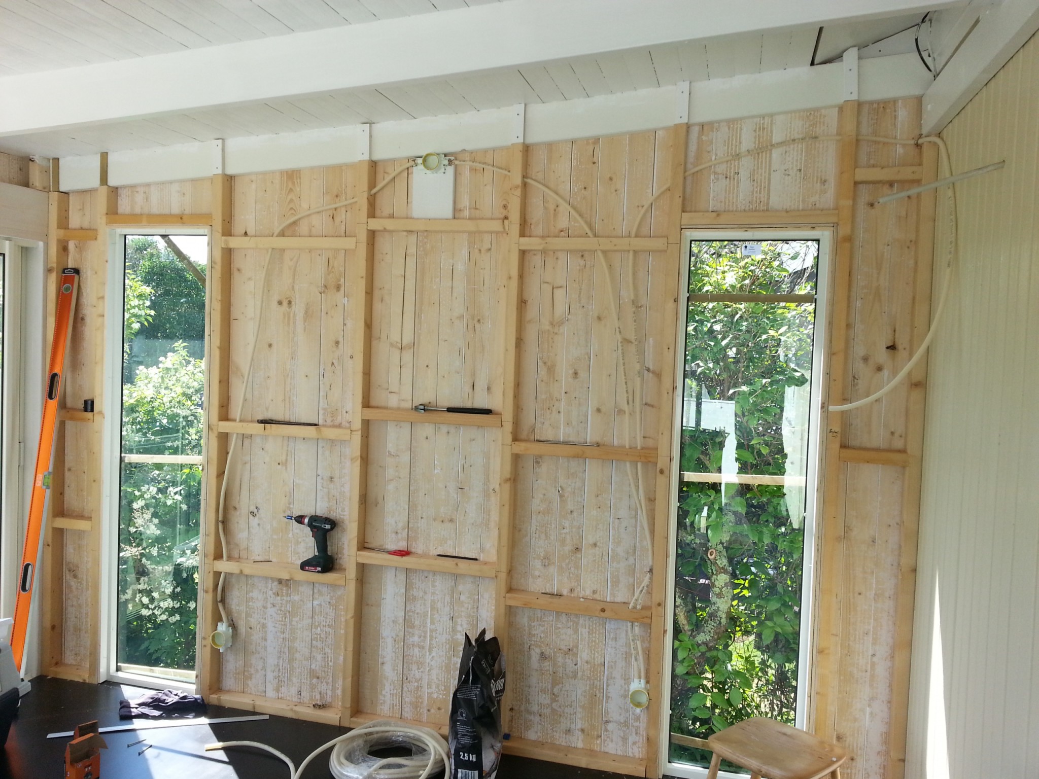 Så här i sommartider har det visat sig OMÖJLIGT att få tag i en elektriker för att utföra en elinstallation i mitt uterum. I stort inte ett större problem borsett från en punkt, jag har en vägg som jag inte kan sätta panel på innan åtminståne slang och dosor är ditsatta.