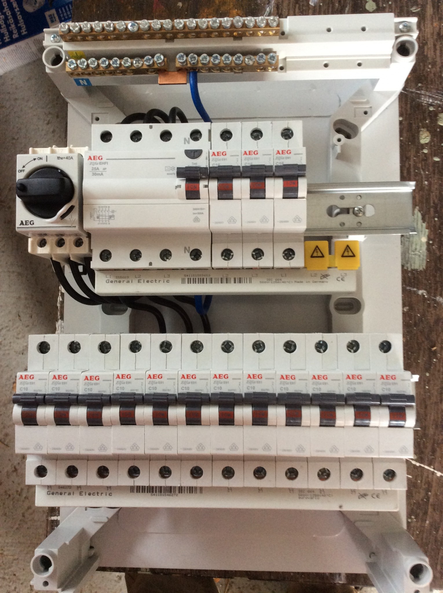 Eller köpa 3 fasig skenstump, finns på Jula/Biltema mfl, som föregående nämt är denna endast till för inomhusbruk, alltså ej skruvförskruvning, denna sätts på vägg, och kablaget kommer från väggen, ta hål och häng denna över.