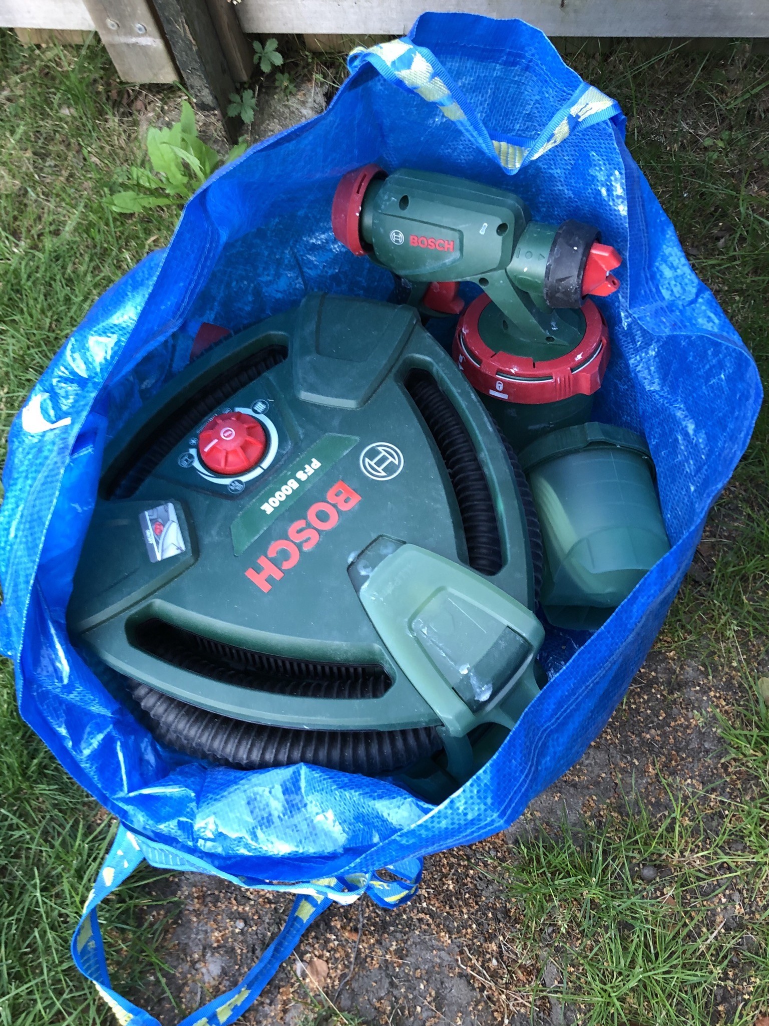 Blev inte kompis med denna Bosch PFS5000E, eller ja, hade inte tid att labba när det skulle målas och har ingen målning kvar där jag behöver denna. 1200:- borde vara rimligt pris, i stort sett oanvänd.