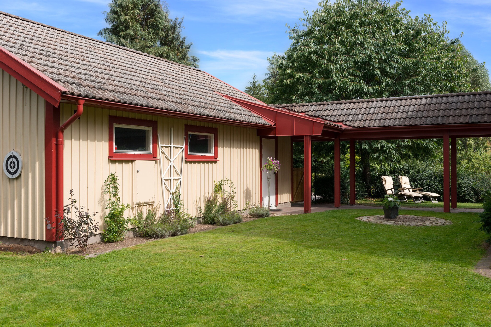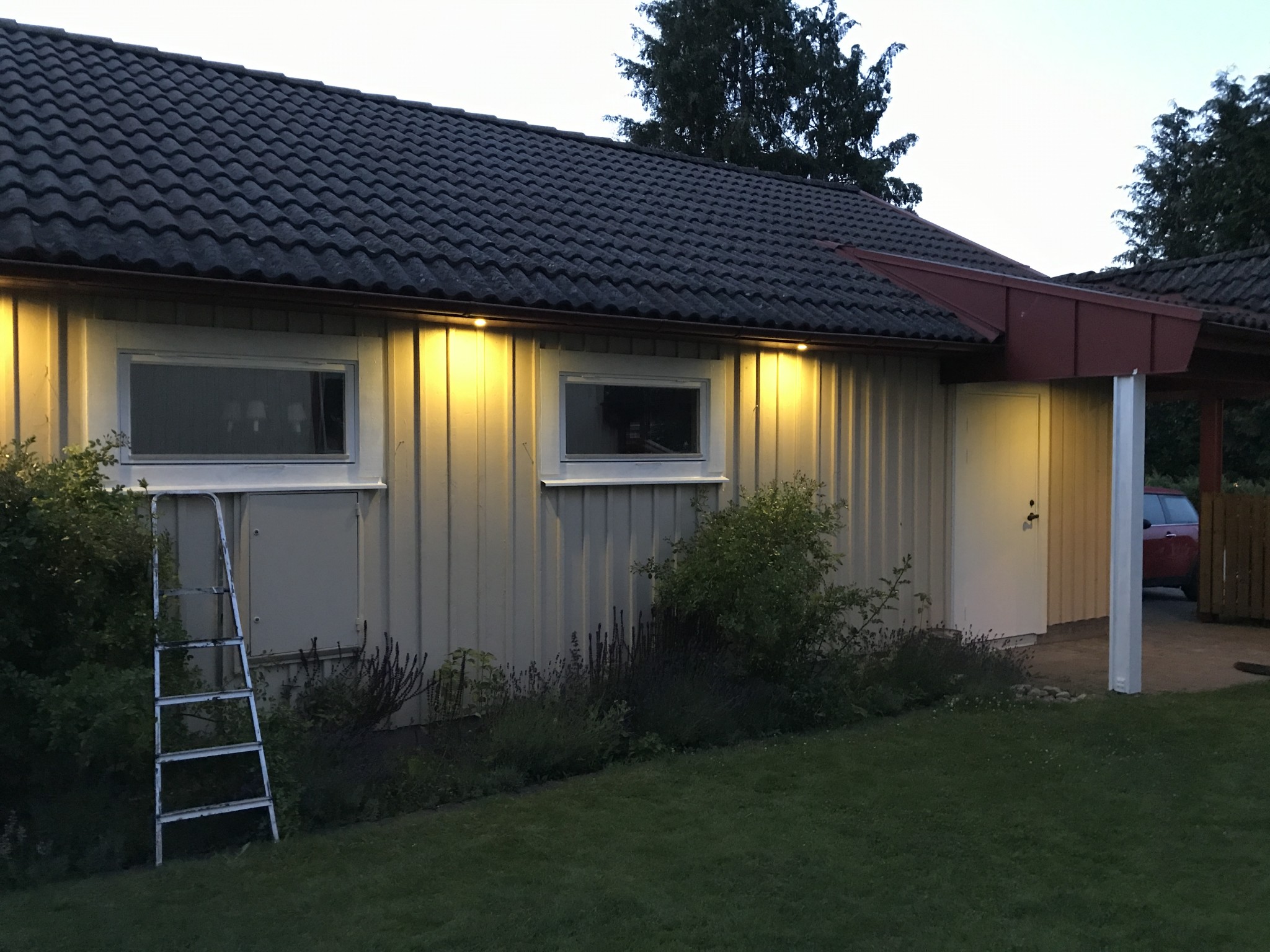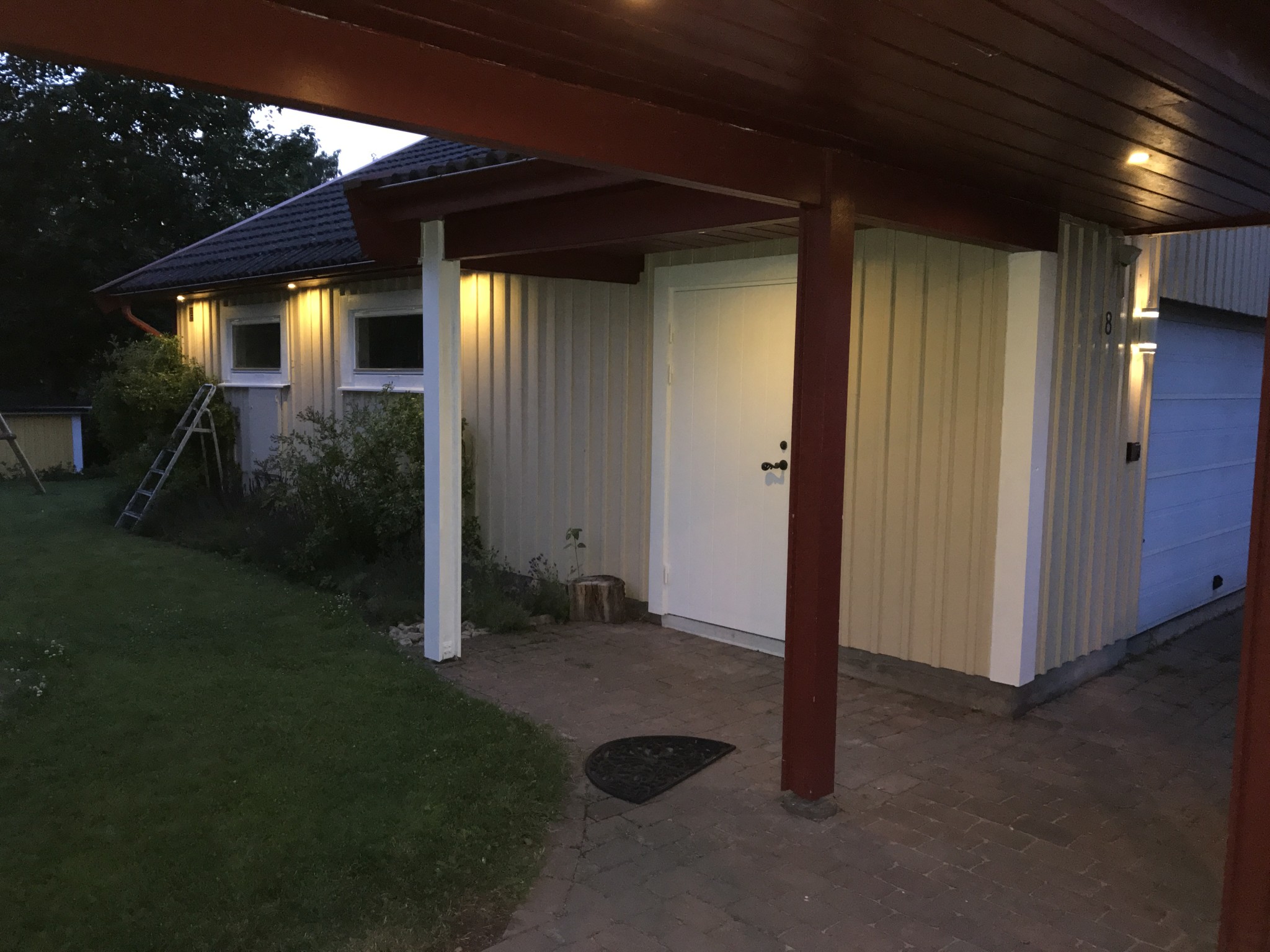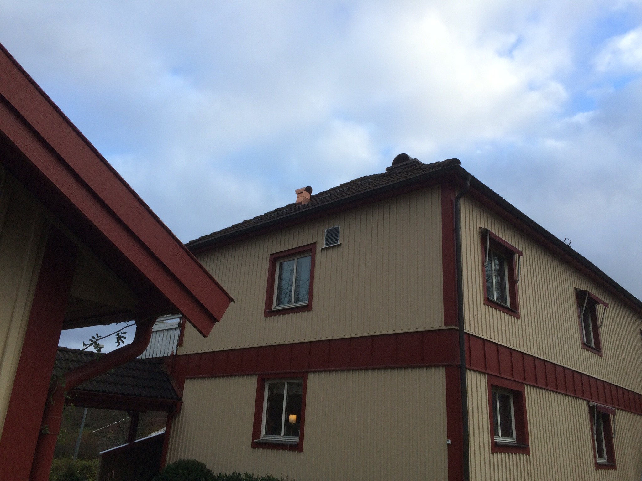 Har bestämt mig för att täcka över våra röda dörr och fönsterfoder med vitt. Funderar på färgval för hängrännor, vindskivor etc.