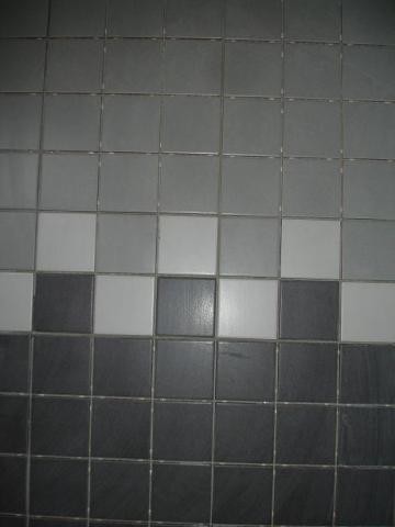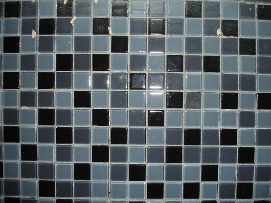 Bifogar bilder på mitt kakel. Glasmosaiken är inne i duchutrymmet, dom svarta stora plattorna är resten av golvet och 3 bilden är väggen.