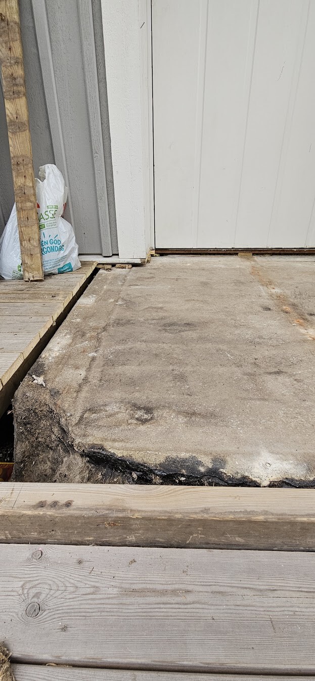 Men, blir lite skeptisk till den befintliga gjutningen om den spruckit i båda hörnen. 🤔 Dålig betongkvalitet, eller gjutning i minusgrader, eller...?