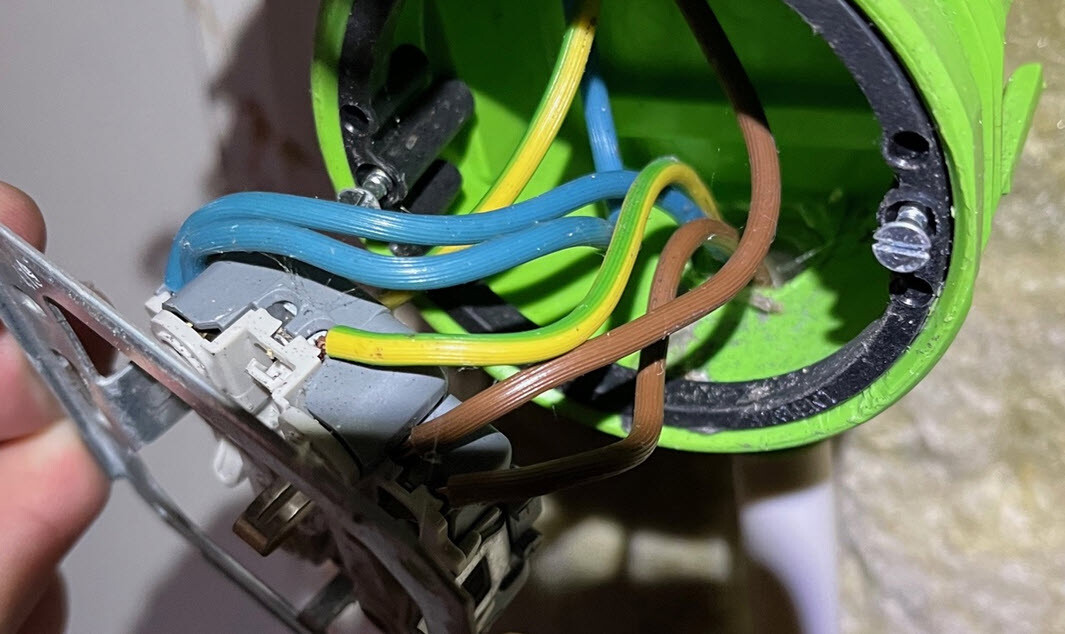 Kollade lite hur elen är dragen mellan en strömbrytare till taklampan i garaget, ser konstigt ut.