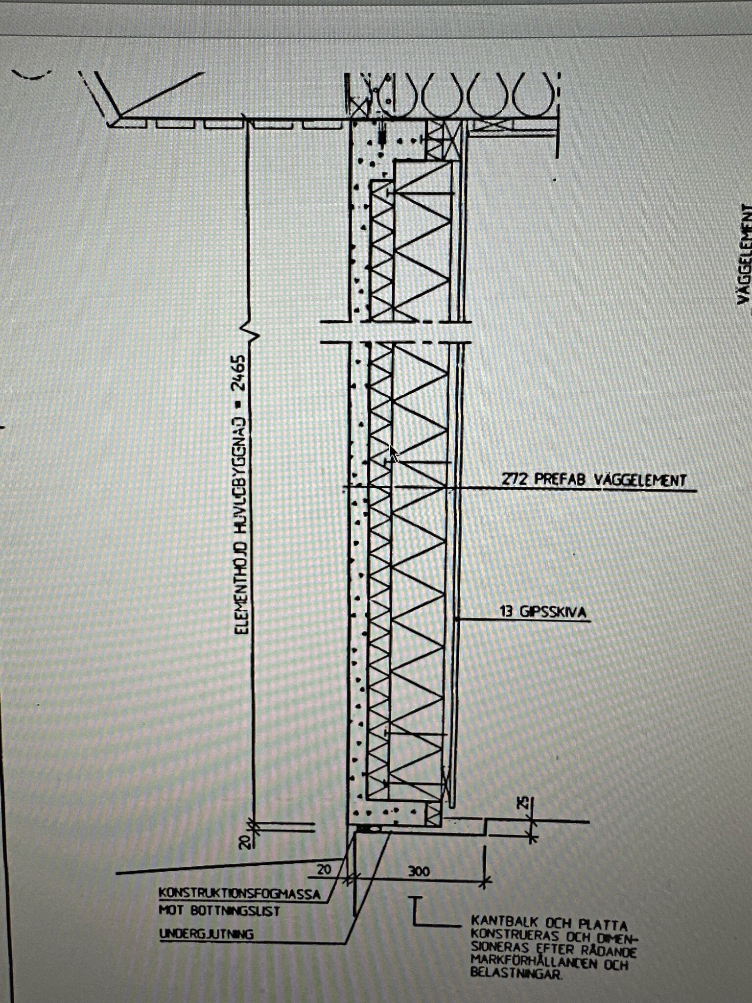 Det ser ut som prefabväggar brukar göra, med den skillnaden att det ofta är en betongskiva även på insidan. Men för en villa duger det säkert. Isoleringen är väl cellplast, och trä verkar inte vara i kontakt med betong och finns bara på varma sidan. Av skissen att döma. Det är bra.G Guggenheimel skrev:Hej,