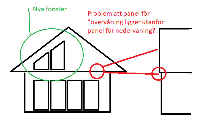 Ett "problem" kanske är att fasaden på överdelen ligger utanför fasaden på nederdelen? I övrigt är det väl inget problem att sätta dit två fönster likt bild nedan: