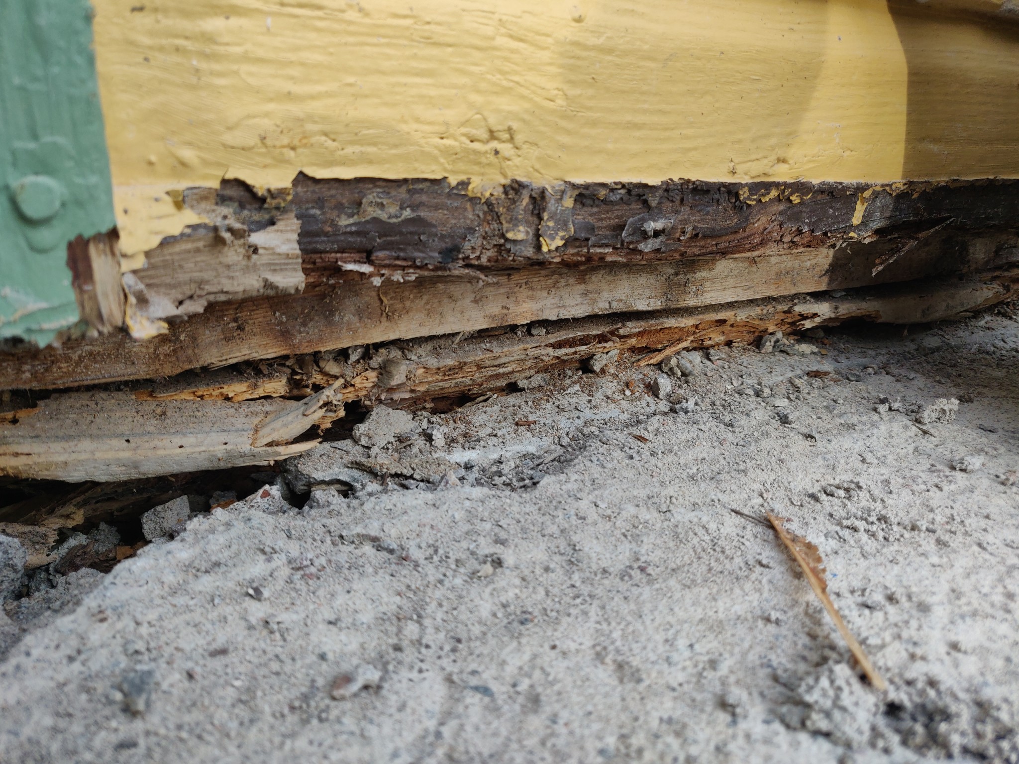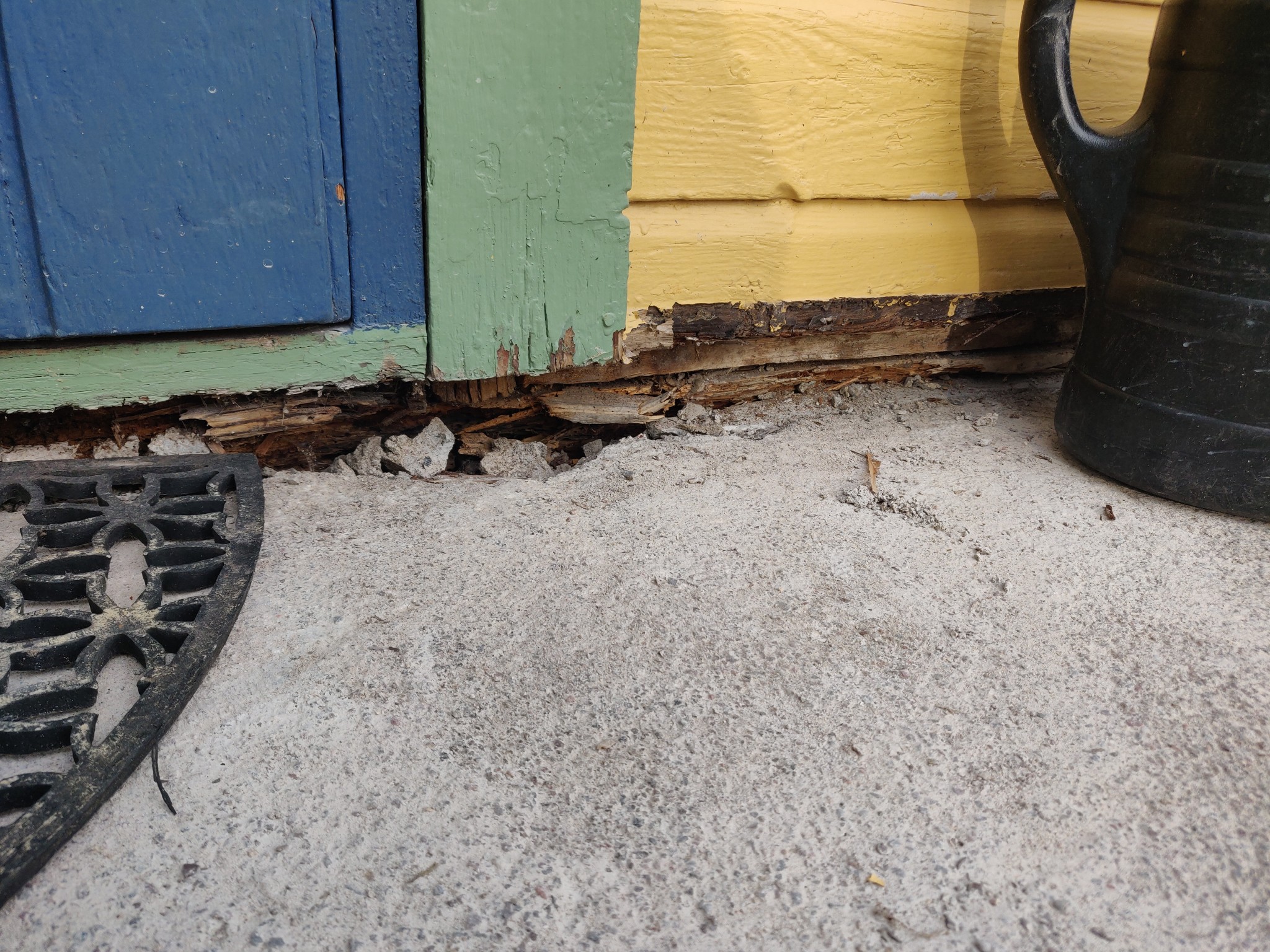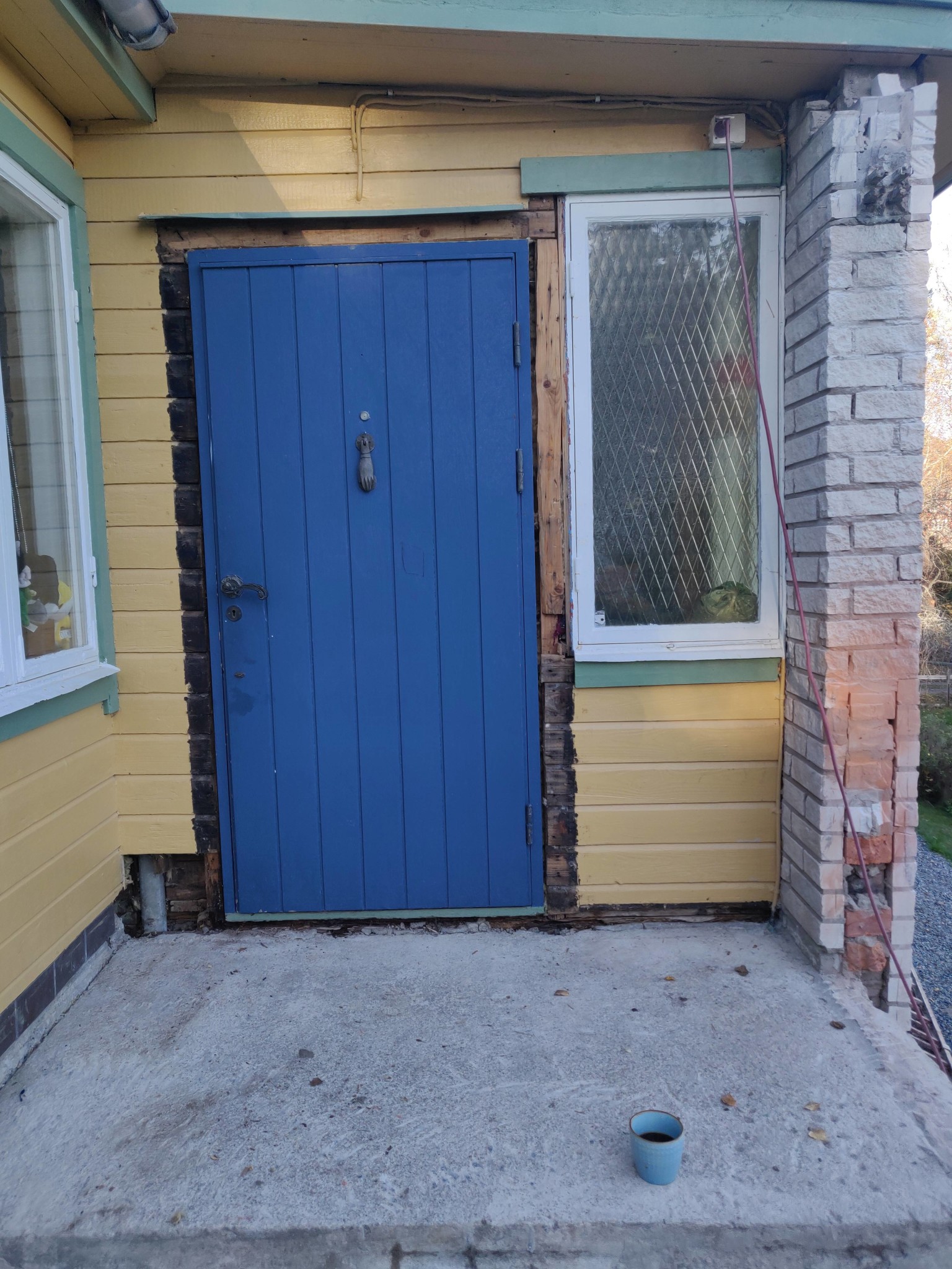 Sen kommer det som måste lösas. En tanke är ju då att bila bort trapp och få fram trä. Byta det som bytas bör. (Eg skulle vägg reglas och byggas om helt tro)