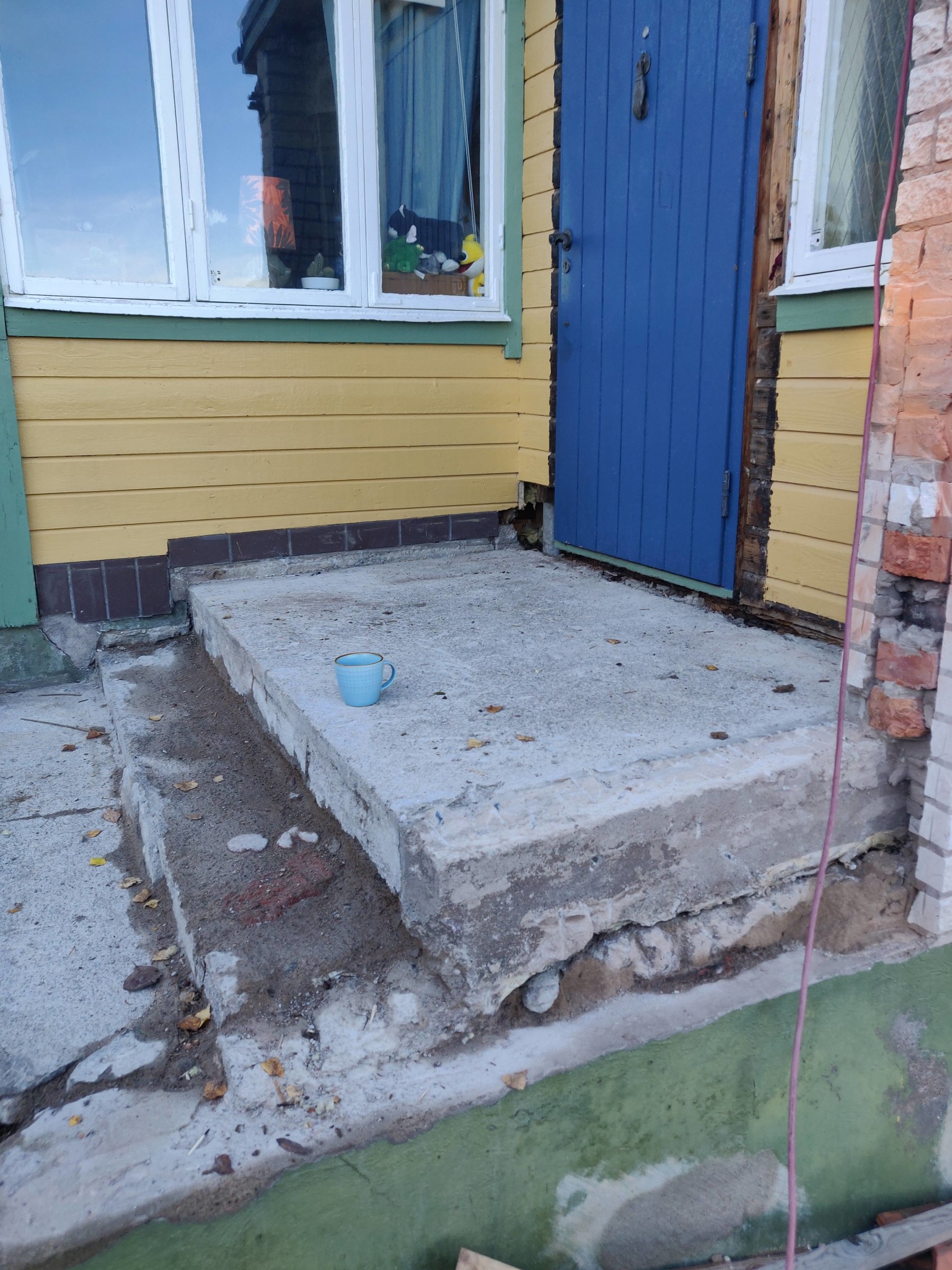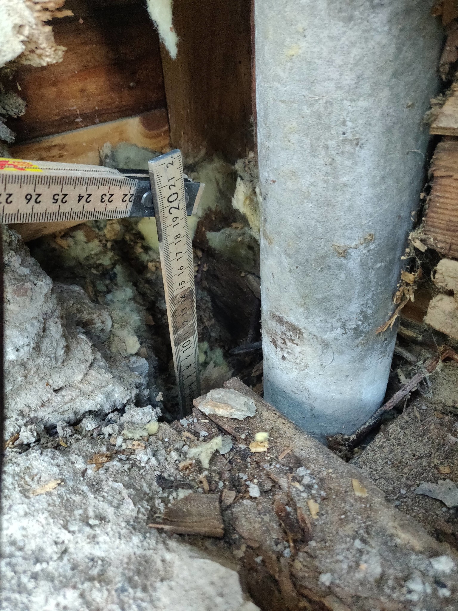 Då ser man att trappa är pågjuten mot trästomme. Alltså trapp ca 30cm hög och bak ligger den äldre trästomme, 20-30cm lägre ned bakom trapp. Mkt är ju såklart även slut där på "djupet".