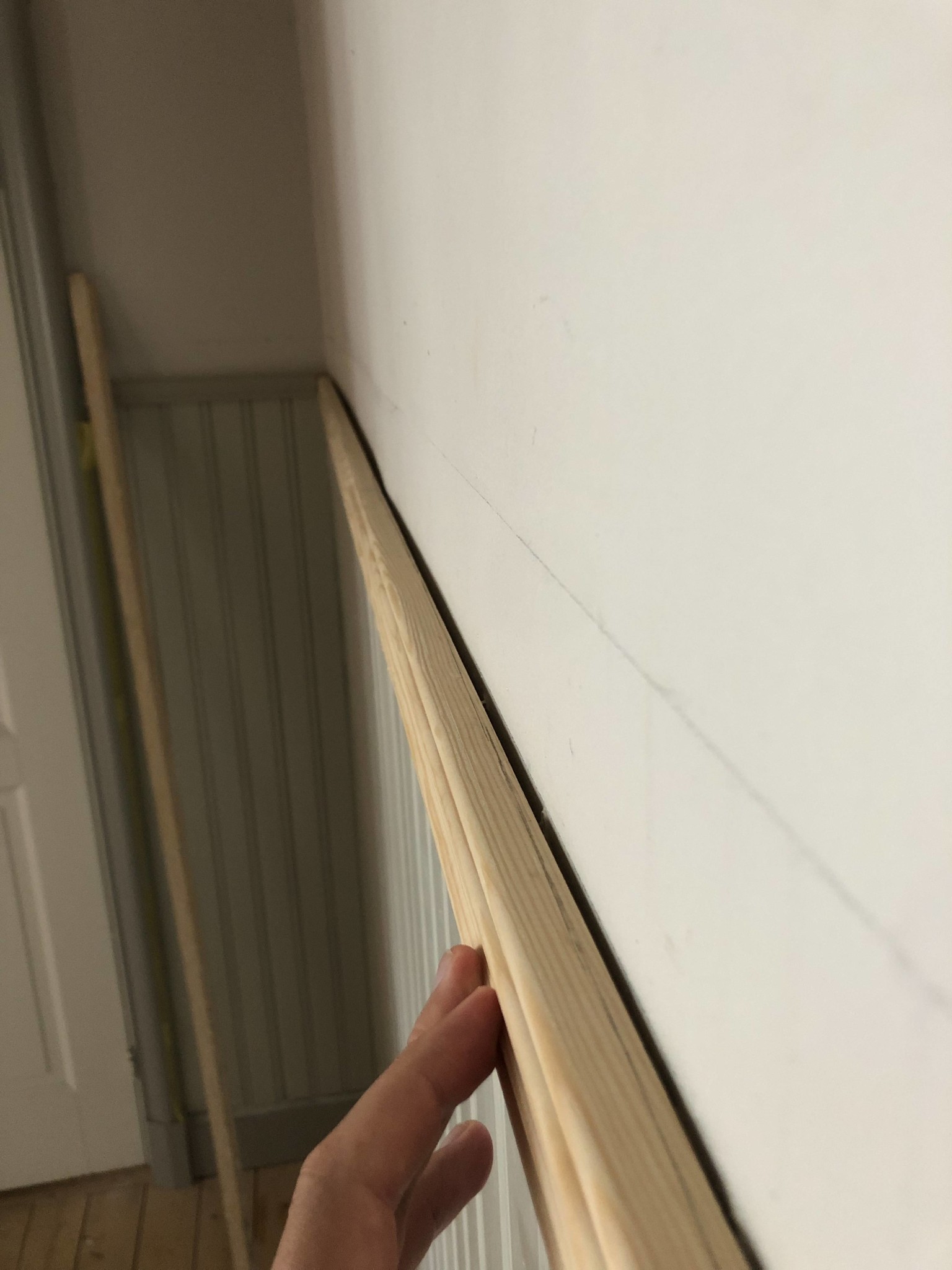2: Slipa ner listen i bakkant för att anpassa den efter väggens ojämnheter, då bröstlisten är relativt nätt så känns detta heller inte som ett optimalt alternativ efter jag inte har allt för mycket spelrum.