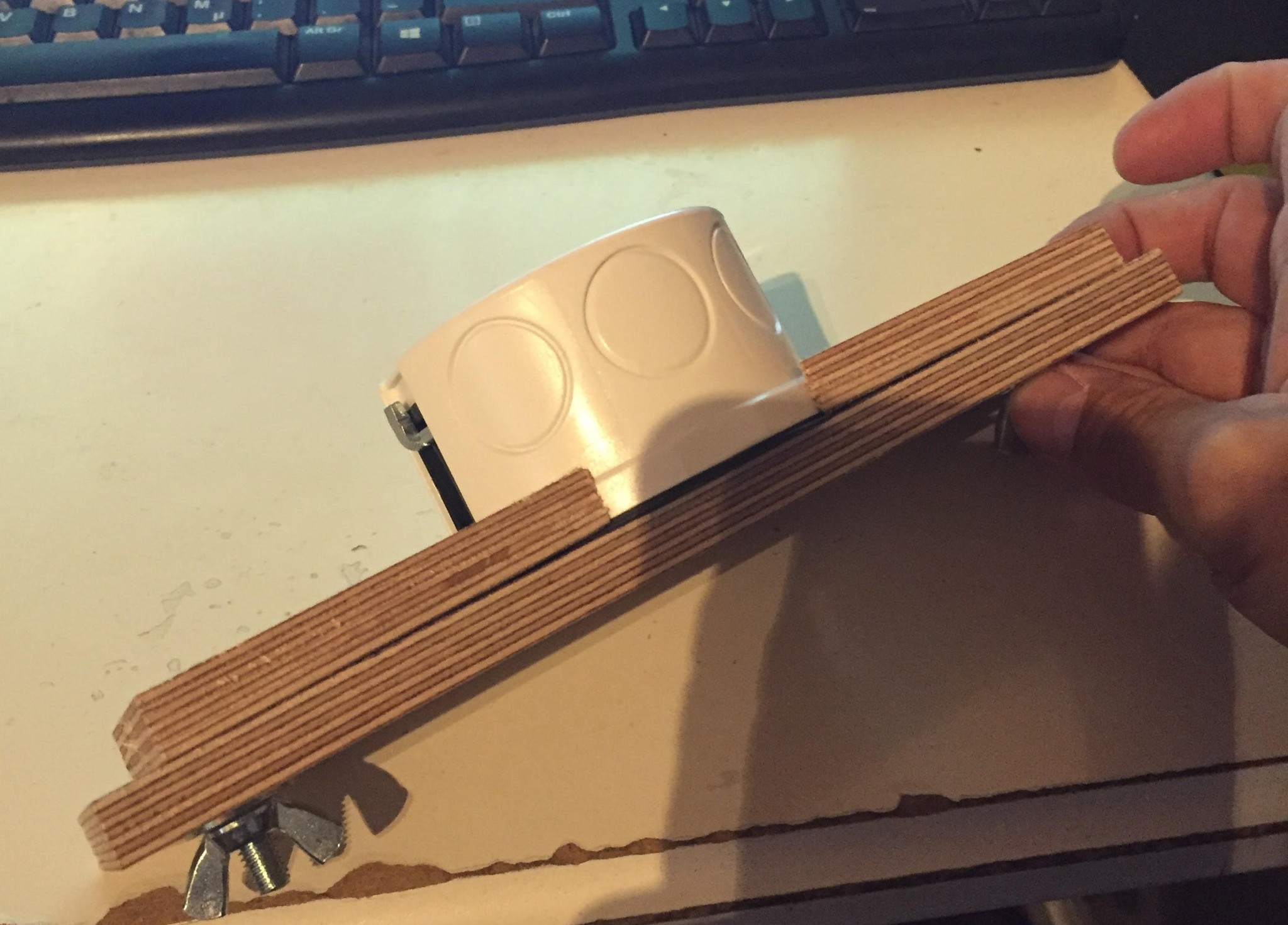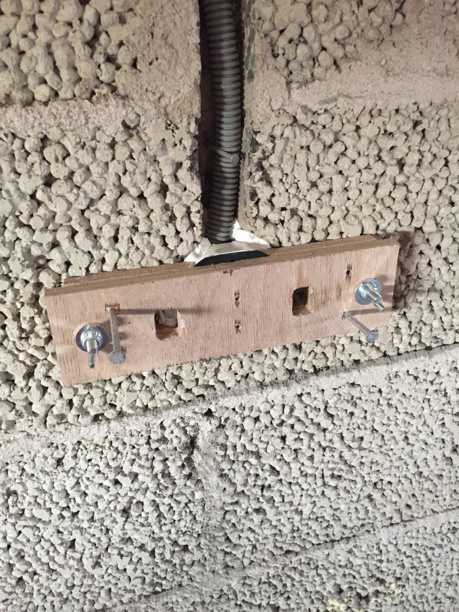 Mittenklossen går in i dosan för att fixera den och de två yttre bitarna klämmer dosan fast i mallen och skapar exakt 10mm distans så dosan hamnar 10mm ut från väggen. Det ska ju på 10mm puts på väggen efteråt.