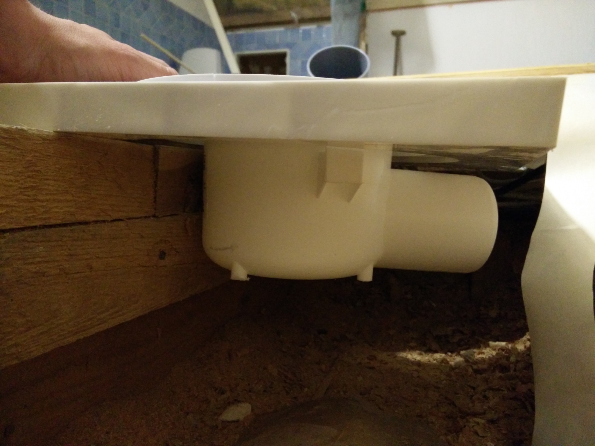 För avloppet så hade jag nog i vilket fall som behövt skruva dit extra regel för att ha något stabilt för golvspånet och väggen.