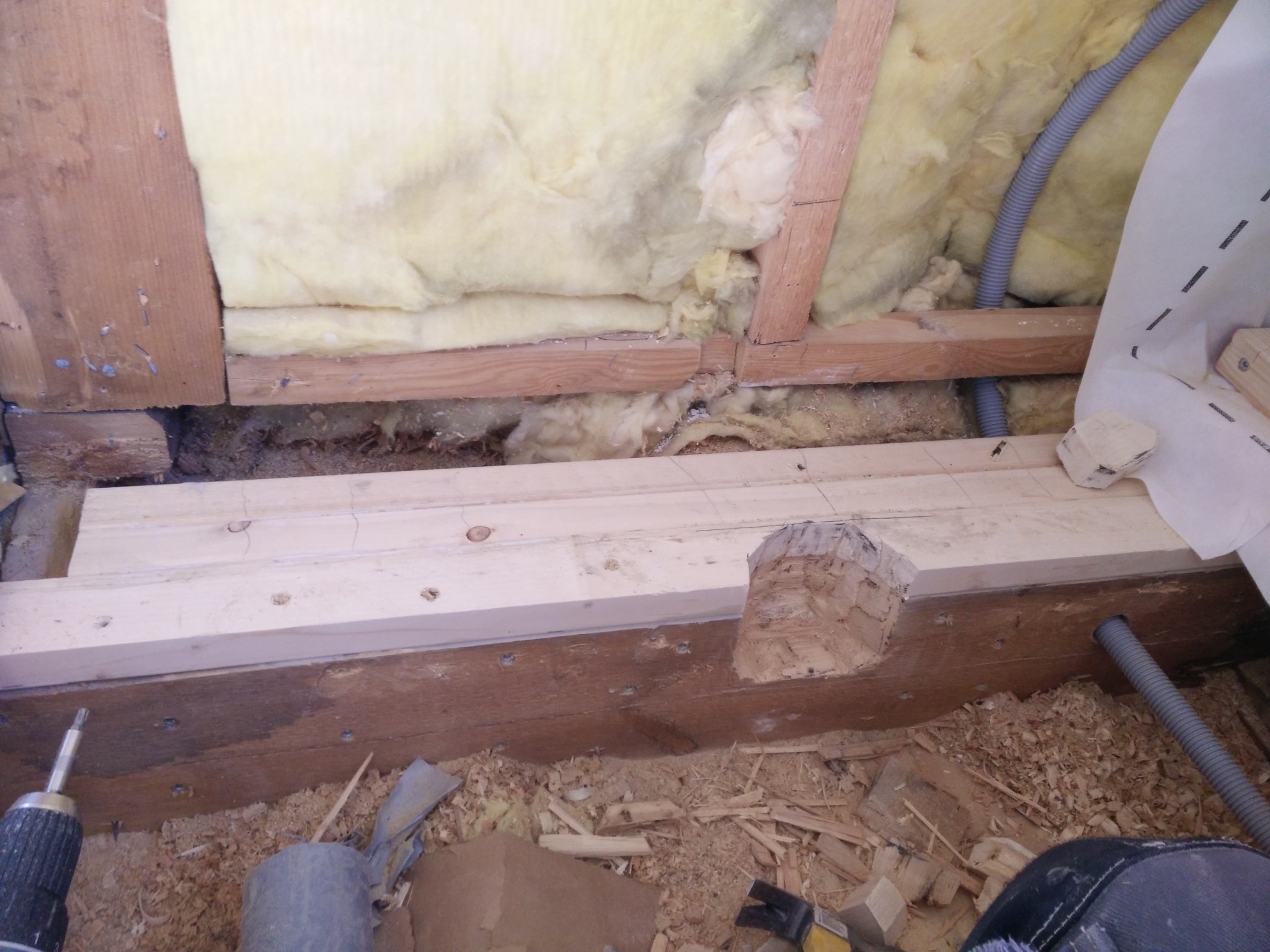 Men annars är bjälkarna bra i våg och i samma nivå med varandra.