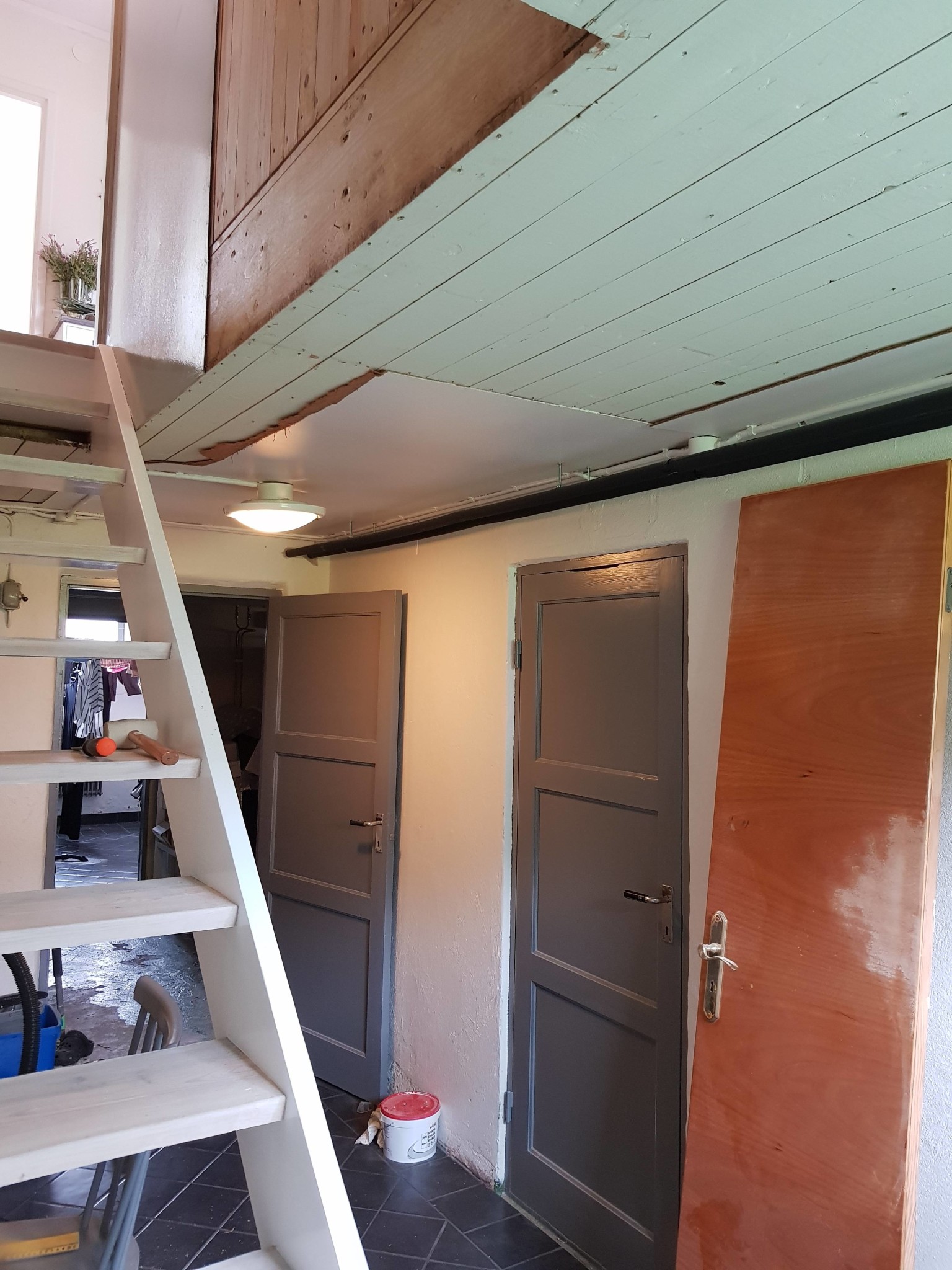 Se bifogad bild, balken som skall avlastas syns längs med trapphålet, väggen till höger kommer rivas.