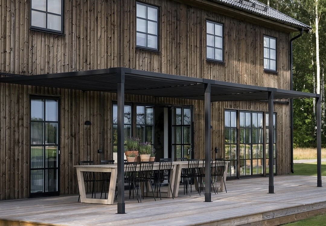Ser nästan ut som att det är en aluminiumpergola på bilderna. Är det det ni tänker er?