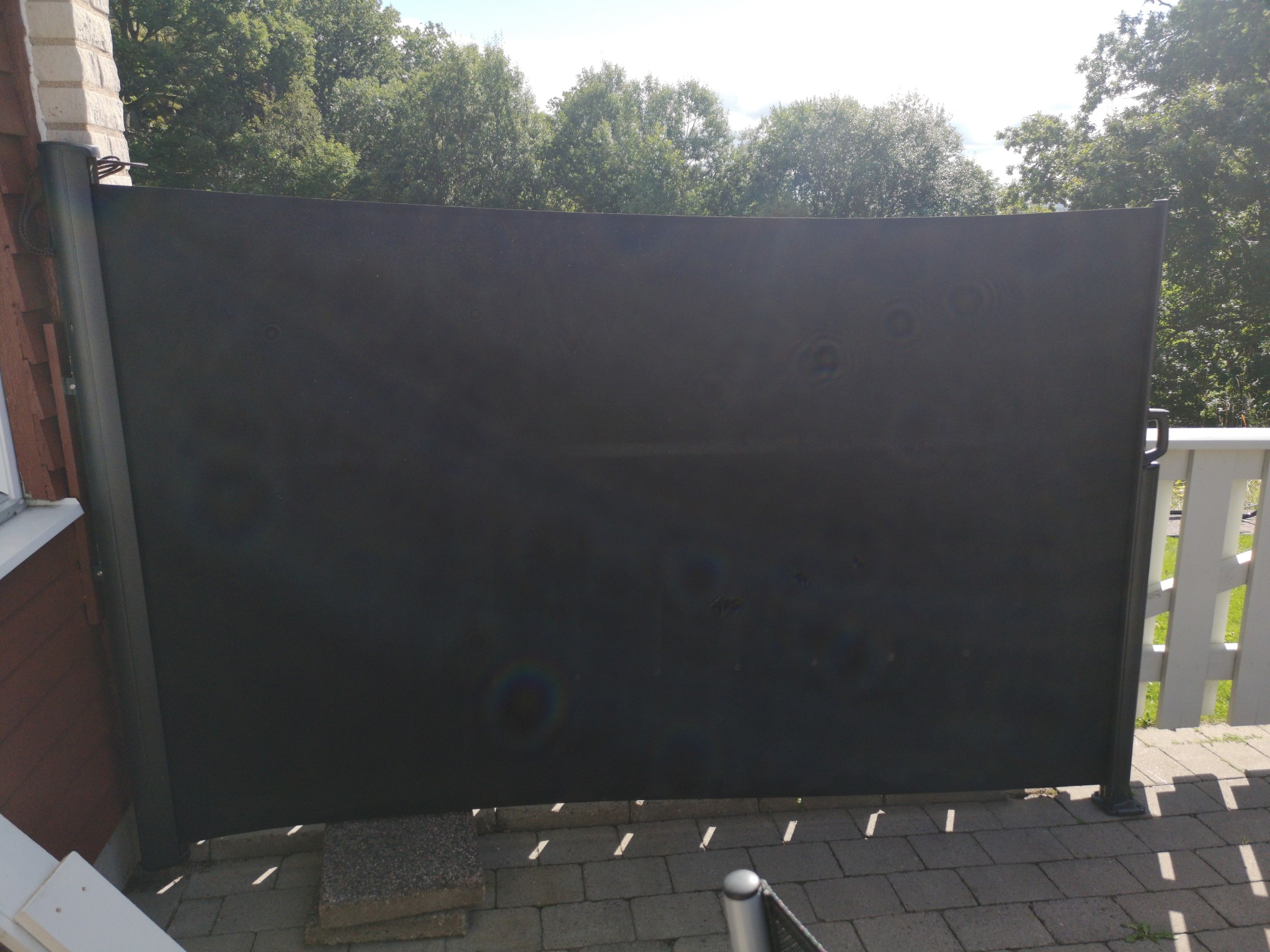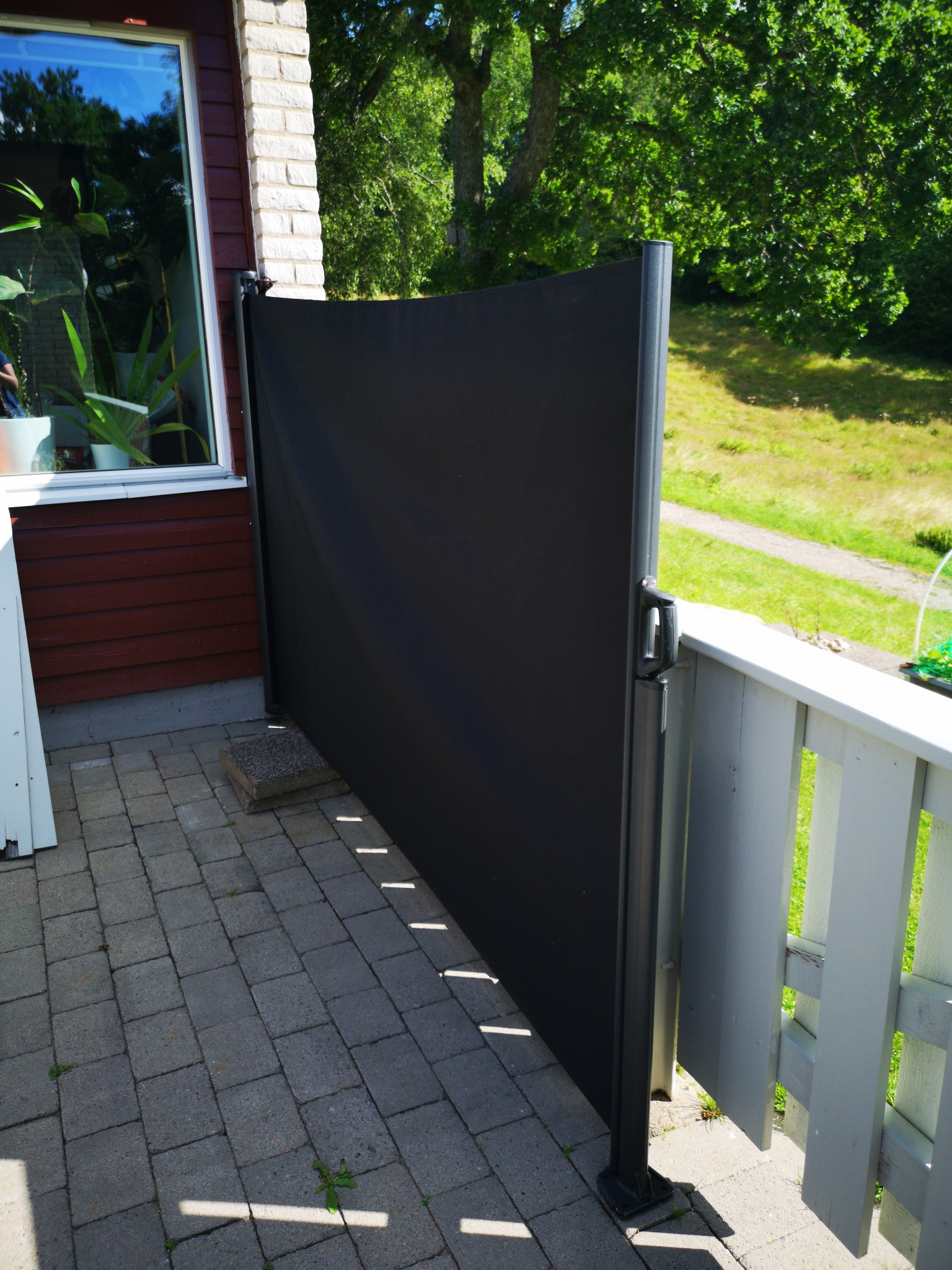 Här kommer bilder på markisen när den är monterad förresten. Blir liksom hävstångseffekt av stolpen.