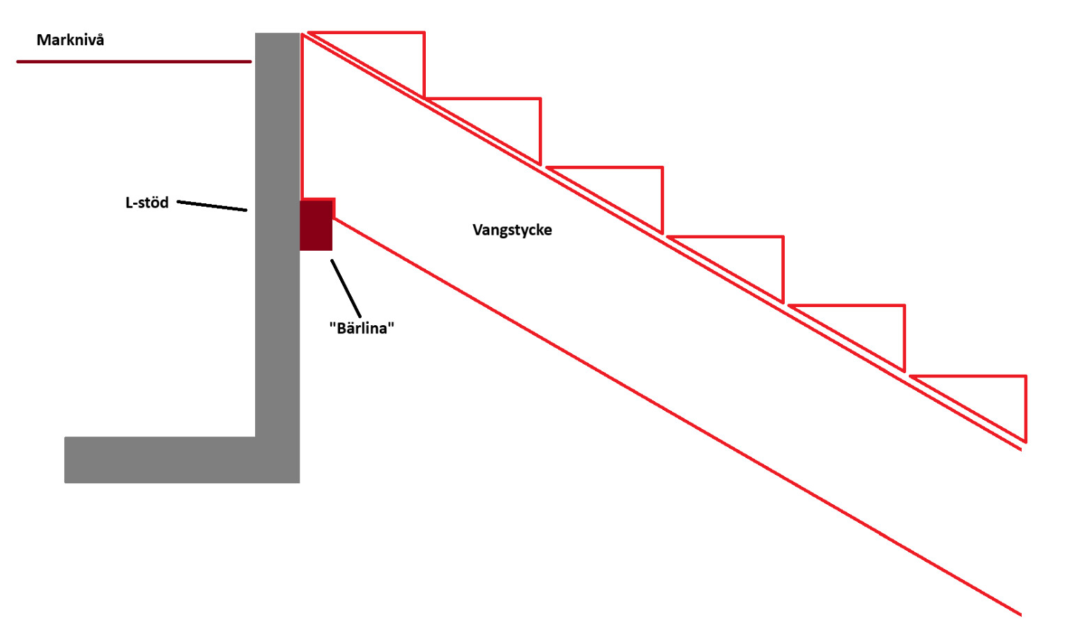 En tanke är att fästa en bärlina längs med L-stödet och jacka ur vangstyckena och lägga dem på. Hur fäster man i så fall bärlinan? Expander, betongskruv, ankarmassa? Genomgående bult skulle bli ett väldigt stort jobb i och med marknivån på andra sidan L-stödet. L-stöden är ungefär 10cm tjocka.