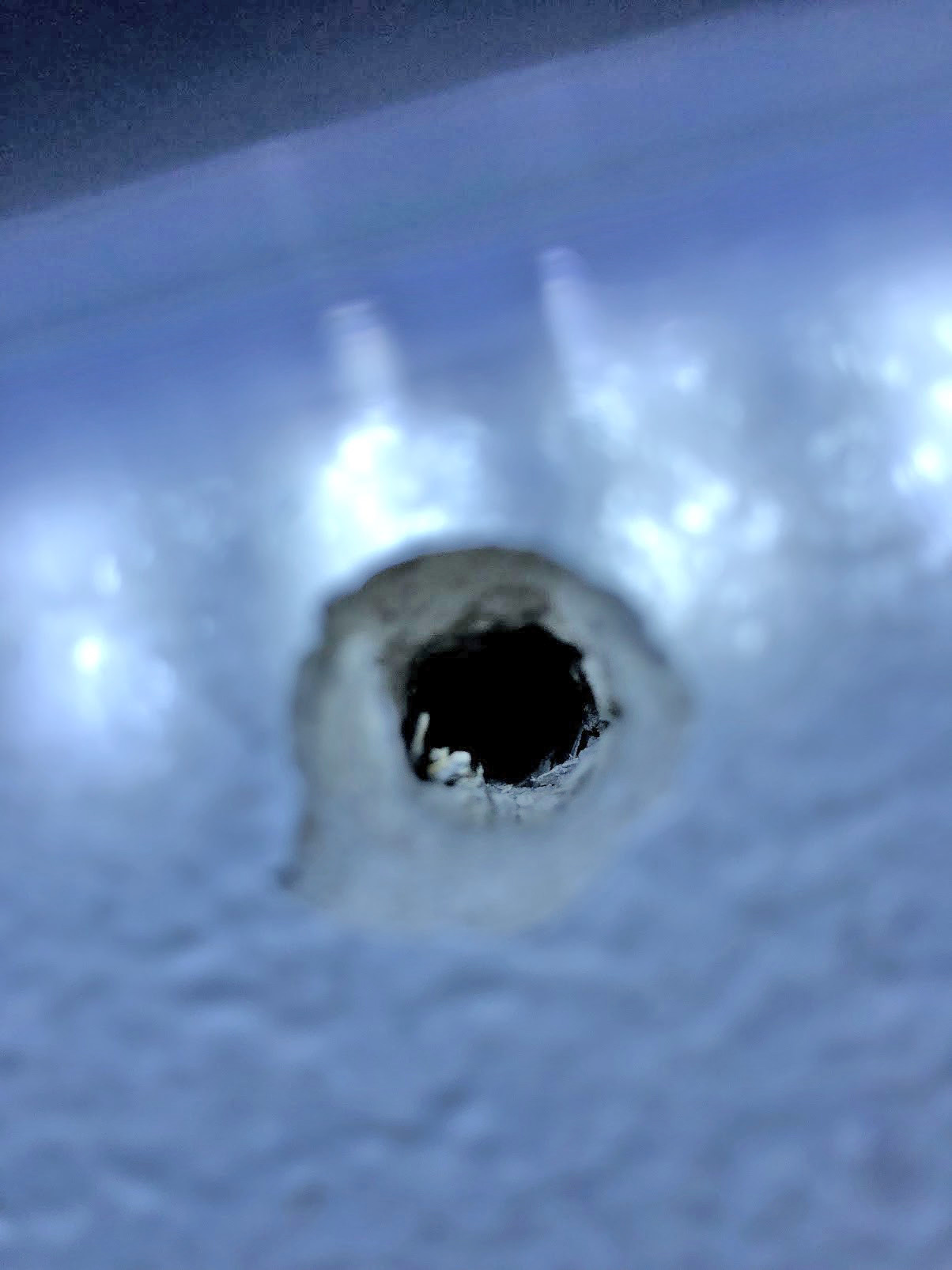 Problemet är att det ytterst är rätt lös puts som följs av något väldigt ihåligt trämaterial?, försökt kika in och det ser ut som någon luftig trä-flis massa bara? De universalplugg jag testat med bara släpper och får inget grepp.