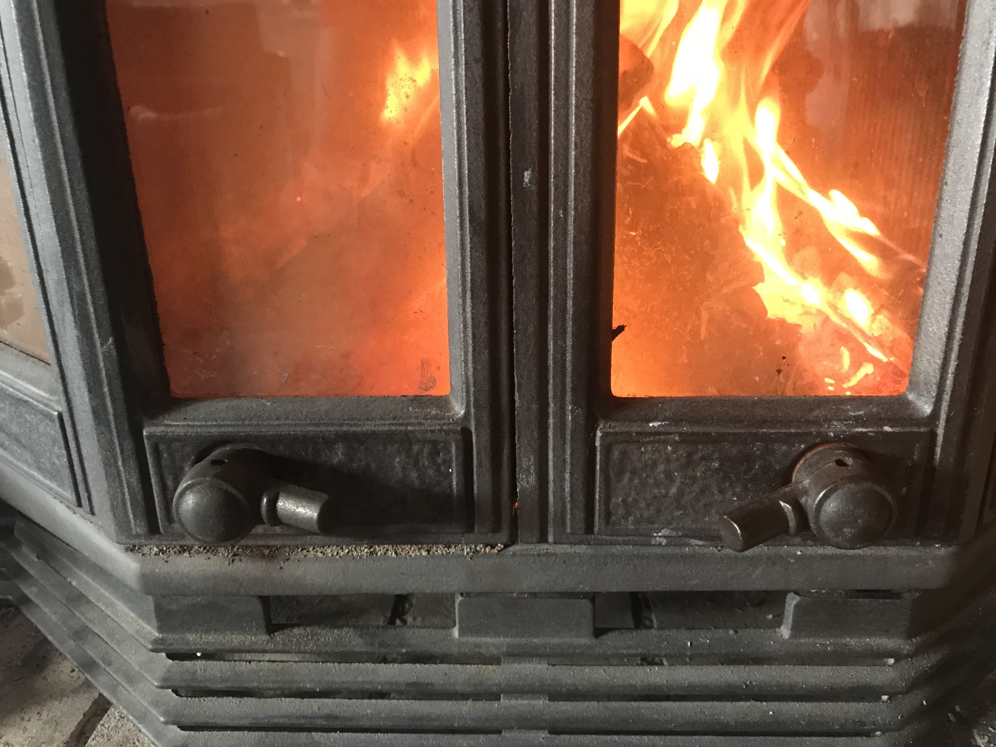 Nu i april när vi skulle elda, gick det inte att öppna en av de två luckorna, det vänstra. Förmodligen är vredet på den ena luckan fastbränt. Har med kraft försökt att öppna, men tji.