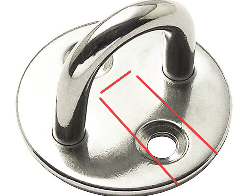 Frågan är hur man sedan fäster ringarna, eller snarare remmarna som ringarna hänger i, i skruvhuvudet på bästa sätt. Om det går att köpa något som inte är för dyrt, och som håller, så är det att föredra, men jag kan även tänka mig att tillverka något själv. Min huvudtanke just nu är att skära, borra eller fila ut en slits ur ett rejält vinkeljärn som tillåter mig att skjuta in järnet under skruvhuvudet. Typ:
